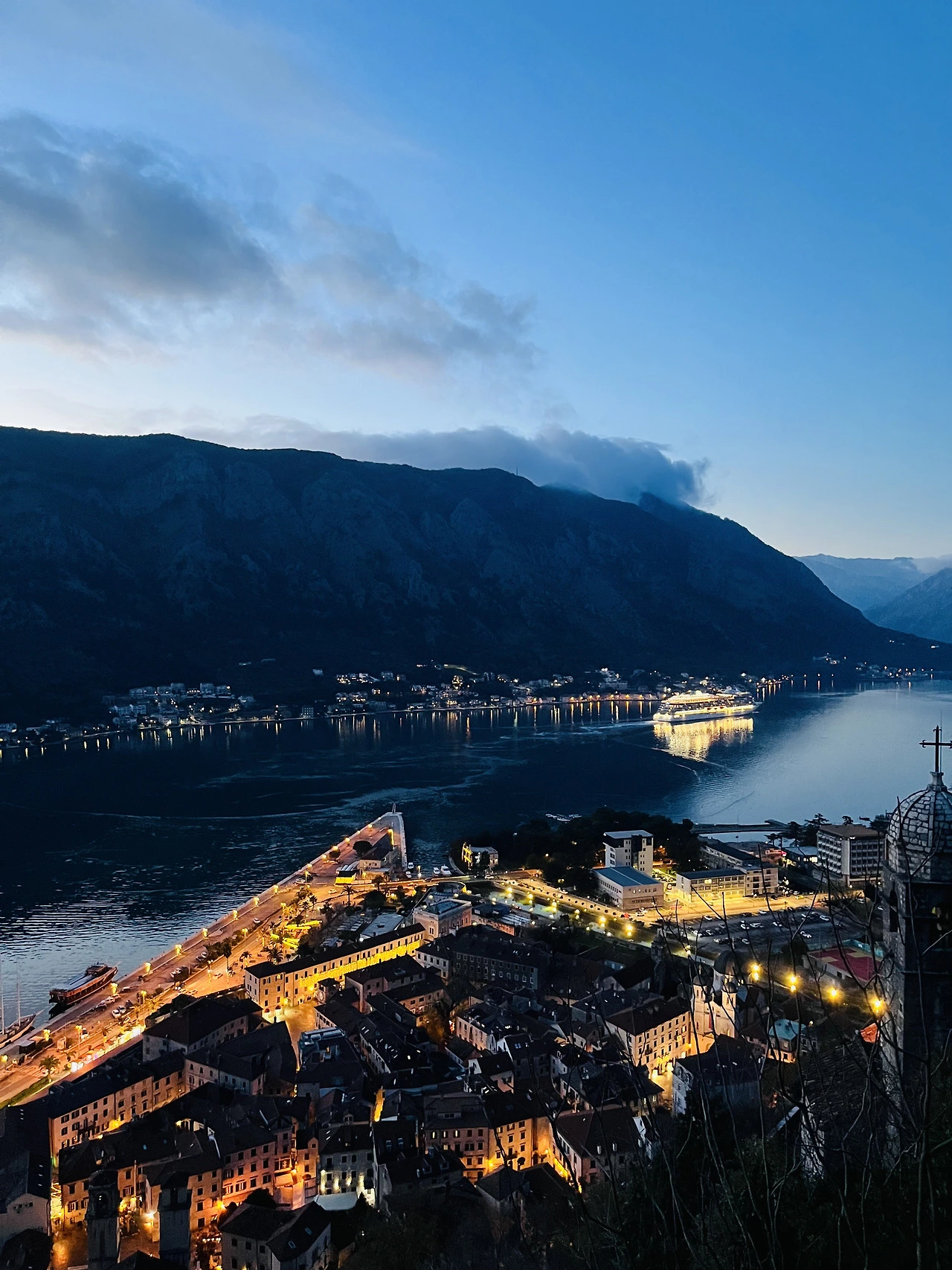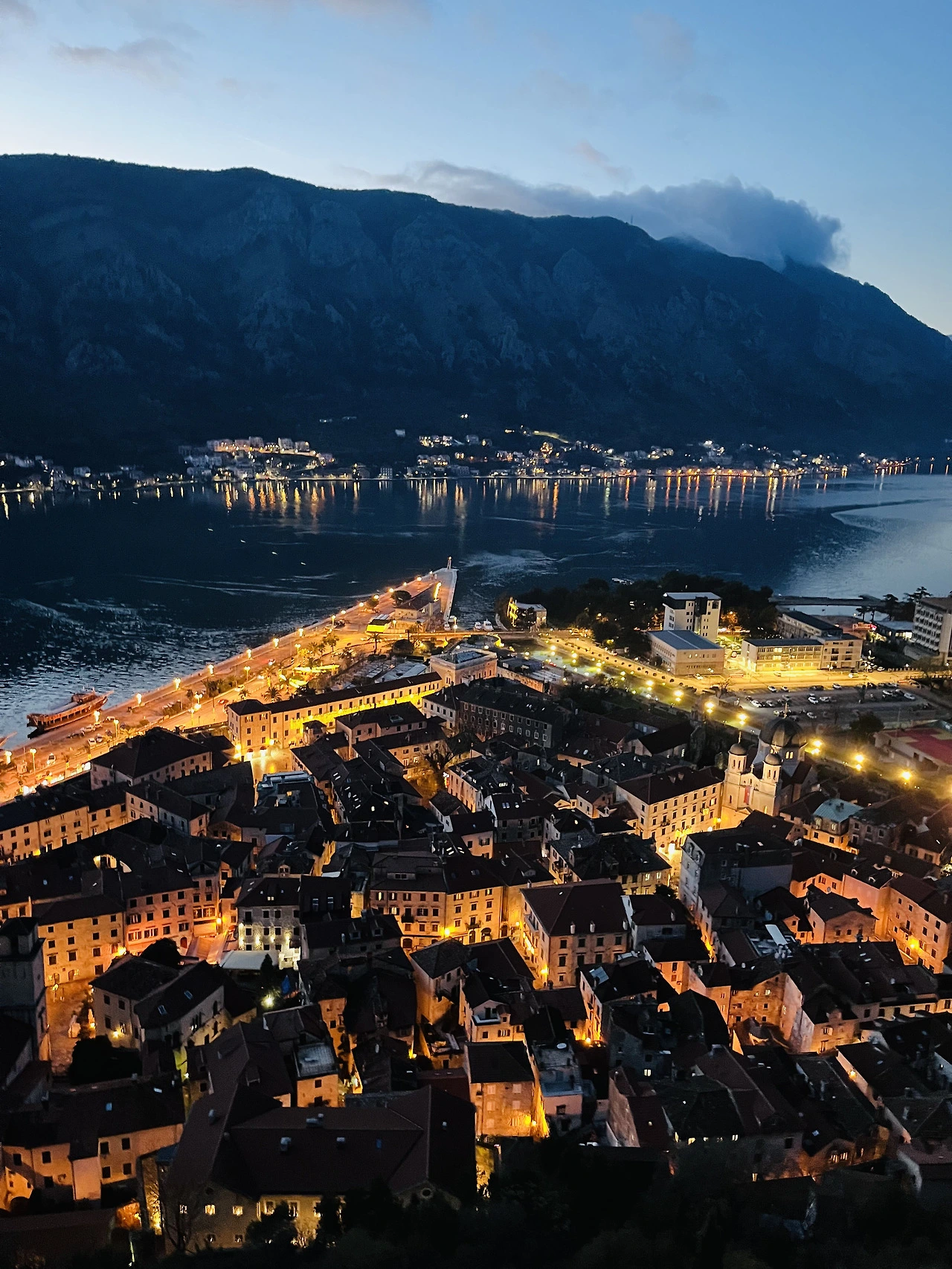 내려오는 길에 마주한 코토르의 야경은