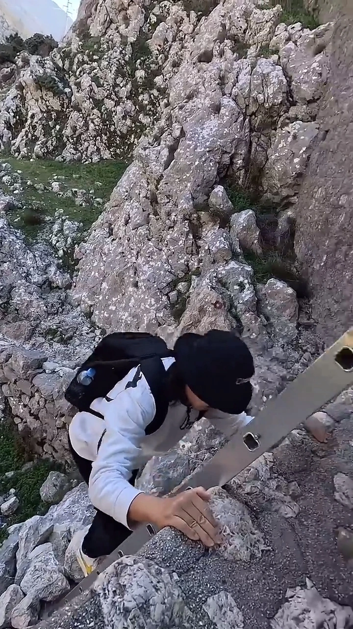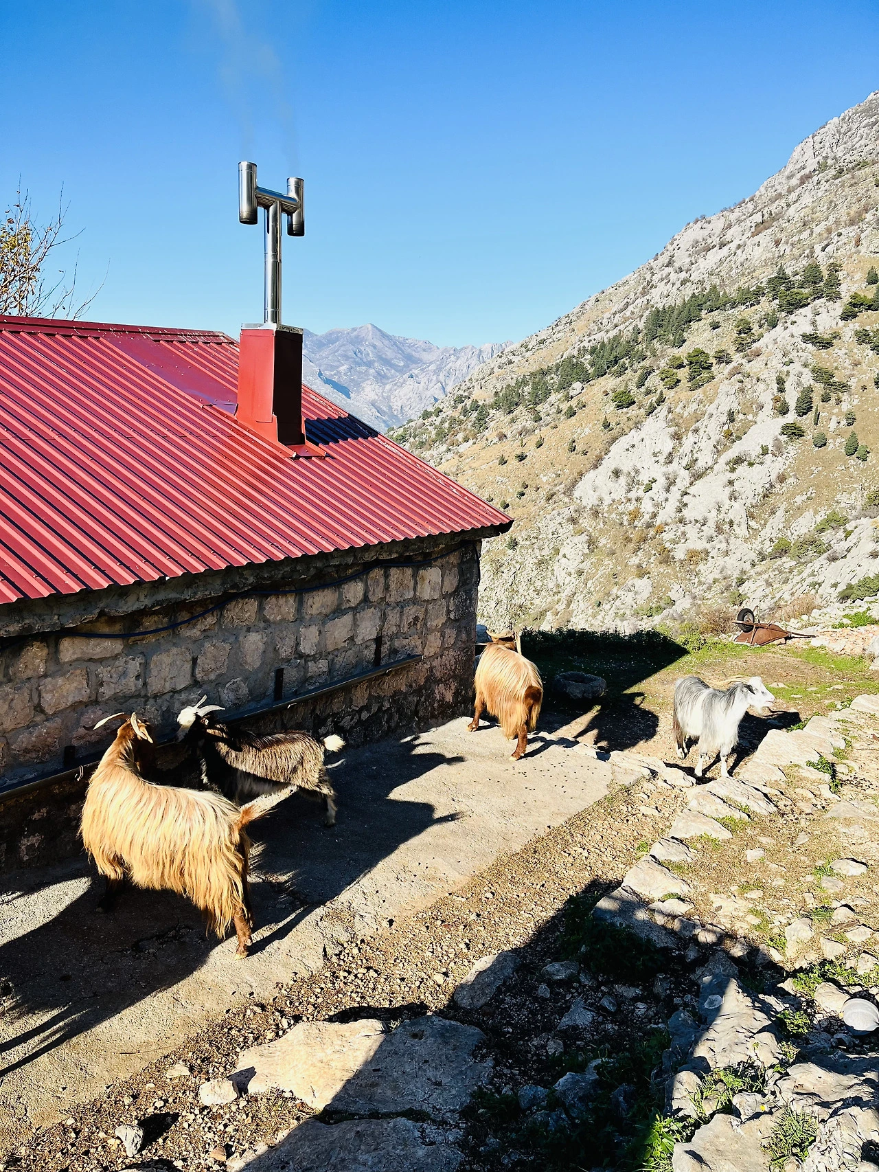 돌벽과 나무 사이에서 산양들이