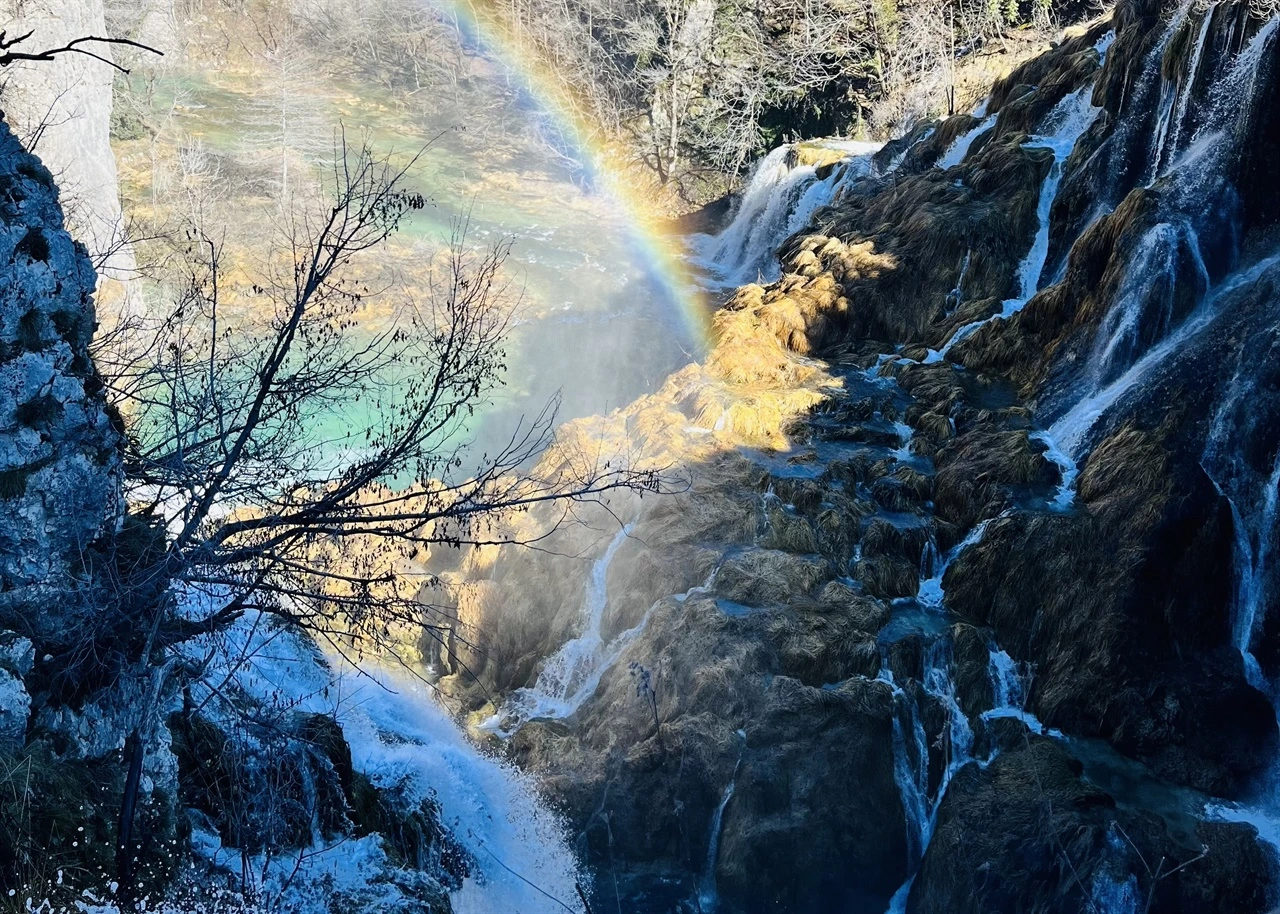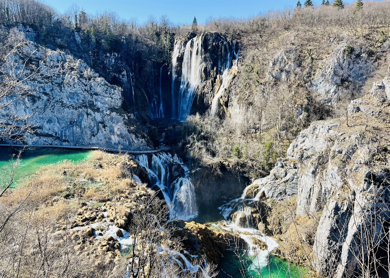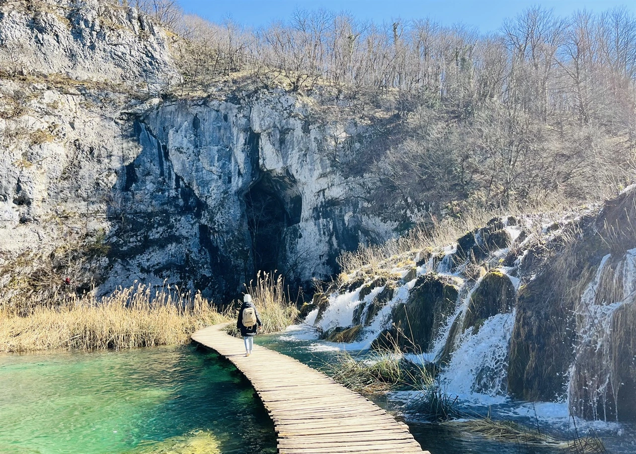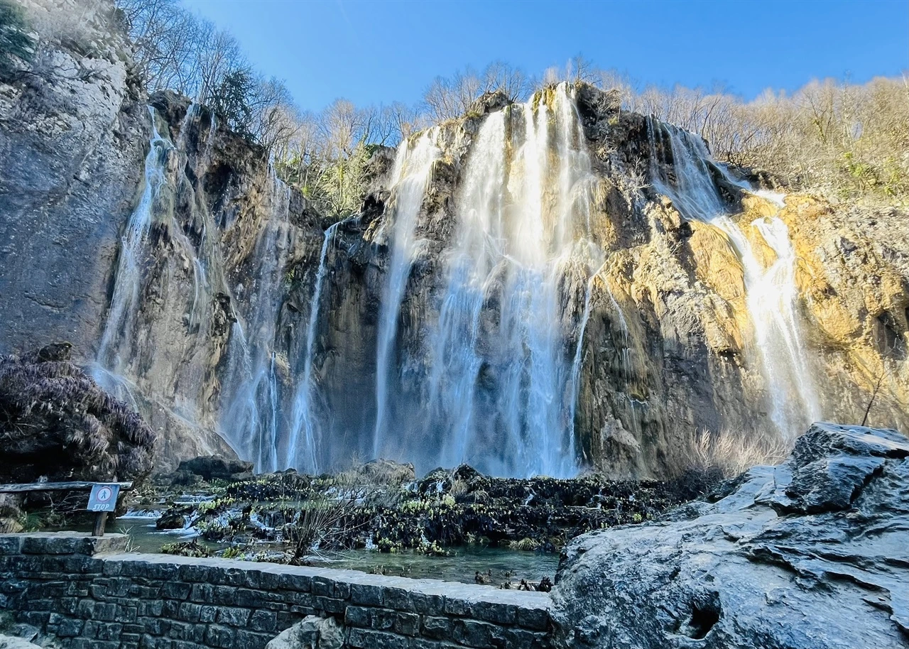 입구를 통과하자마자 귓가를 때리는 웅장한 물줄기 소리가 우리를 압도했다. 소리를 따라 시선을 돌리자마자 마주한 것은 ‘벨리키 슬랩(Veliki Slap)’. 높이 87m에 달하는 크로아티아 최대 규모의 폭포다. 수직으로 쏟아지는 거대한 백색 물줄기는 겨울잠에서 깨어난 대지의 포효처럼 들렸다.