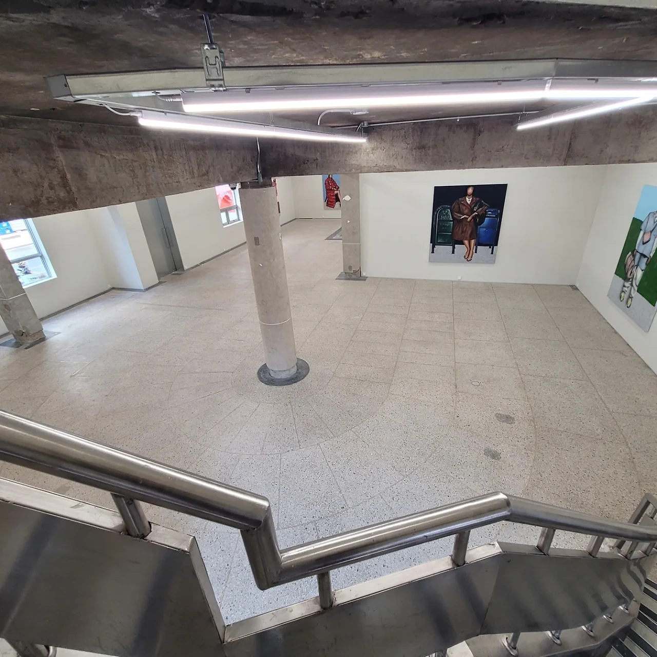 그런데 안은 잘 만들어졌다. 옛 은행지점답게 큰 기둥과 직각의 벽들이 큼직하게 세워진 공간을 잘 활용하고 계단과 채광창은 새로 기하학적으로 조화롭게 배치한 것 같다. 그 사이로 젊은 감각의 회화작품들이 잘 어울린다.