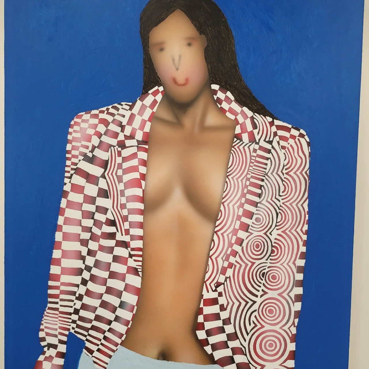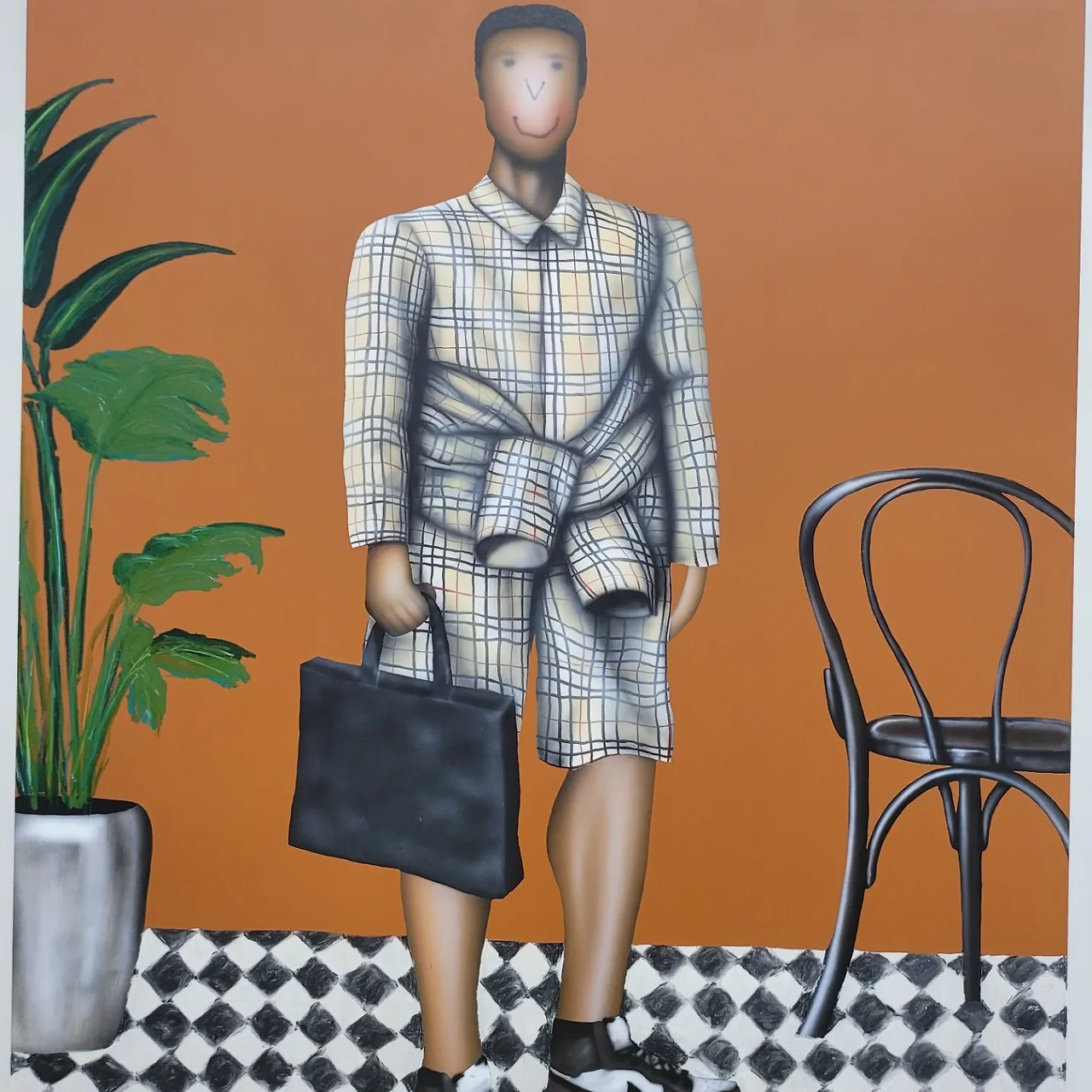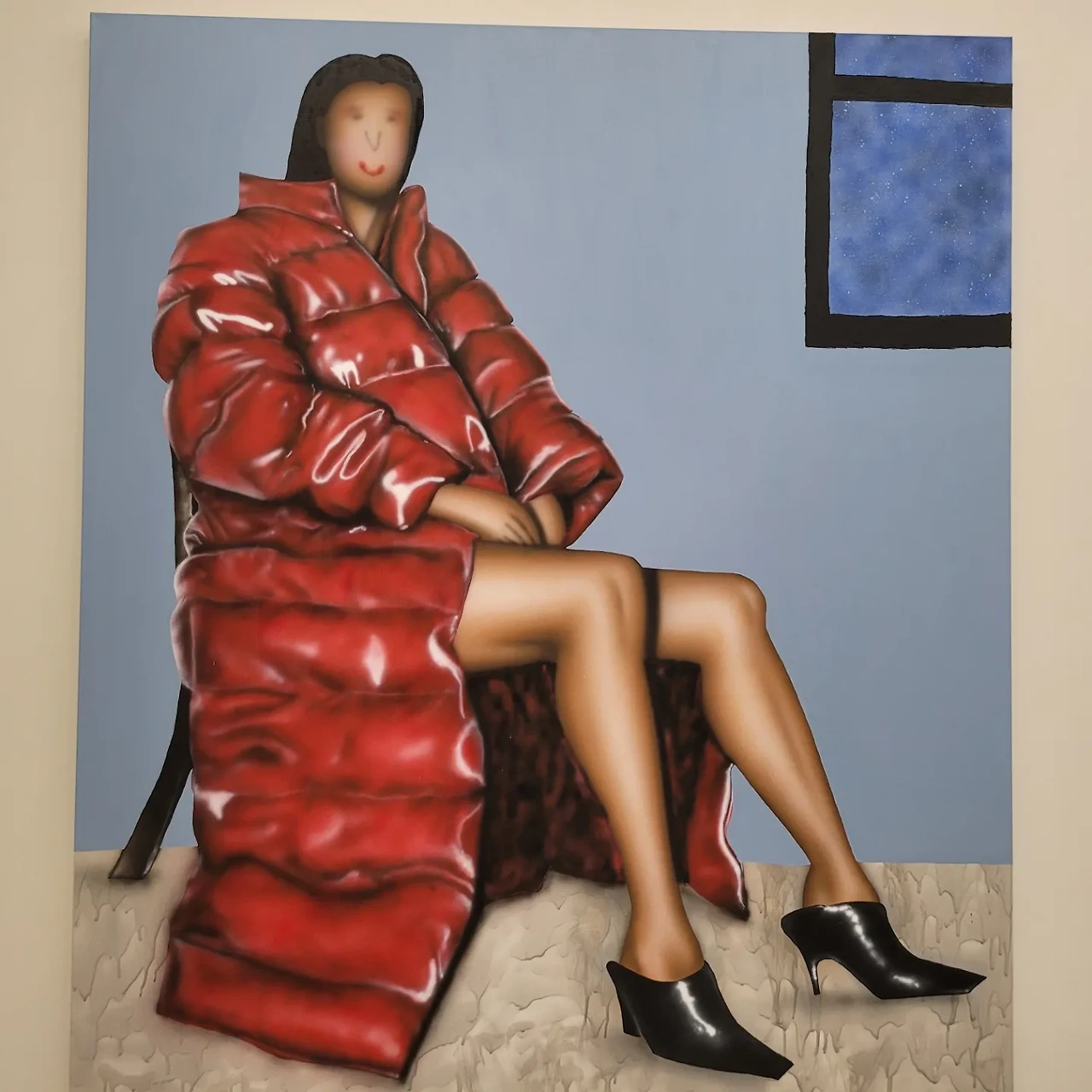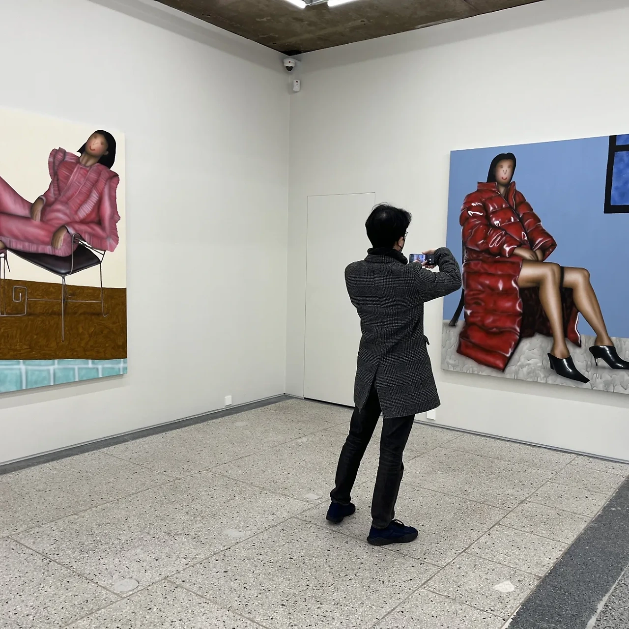 이브겐 코피 코리섹은 슬로베니아 출신으로 독학한 화가라 한다. 영화와 잡지 등의 이미지를 차용해서 인물을 그리되 얼굴은 뿌연 웃는 표정으로 흐릿하게 동일한 형상을 집어넣었다. 그러다보니 얼굴보다는 각종 명품과 소비상품으로 덮은 육체들에 집중하게 되는데 결국 어떤 의미에선 얼굴엔 가면을 쓰고 욕망을 숨기고 사는 현대인의 삶을 강조하는 효과가 있는 것 같다. 그 흐릿한 얼글은 우습기도 하지만 그렇게 억지로 웃으며 몸은 있는 힘껏 가꿔야하는 모순된 상황을 보여준다는 점에서 슬프기도 하다.