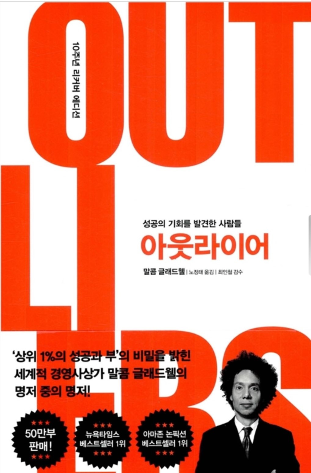 아웃라이어(Outlier). 사전적 정의는 본체에서 분리되거나 따로 분류되어 있는 물건, 표본 중 다른 대상들과 확연히 구분되는 통계적 관측치를 말합니다. 이 책에서는 ‘성공의 기회를 발견한 사람들’을 뜻하죠.
