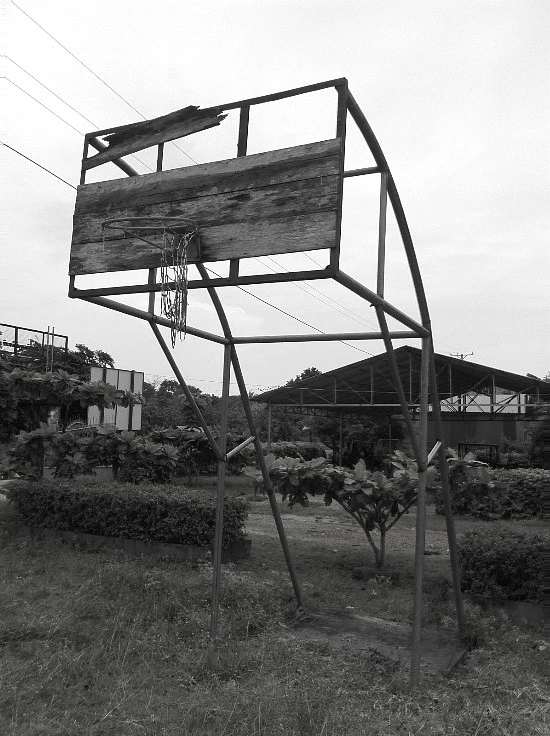 그렇게 사용하지도 못할 농구대는 학교 운동장 한편에 몇 년째 흉물스럽게 서 있다.