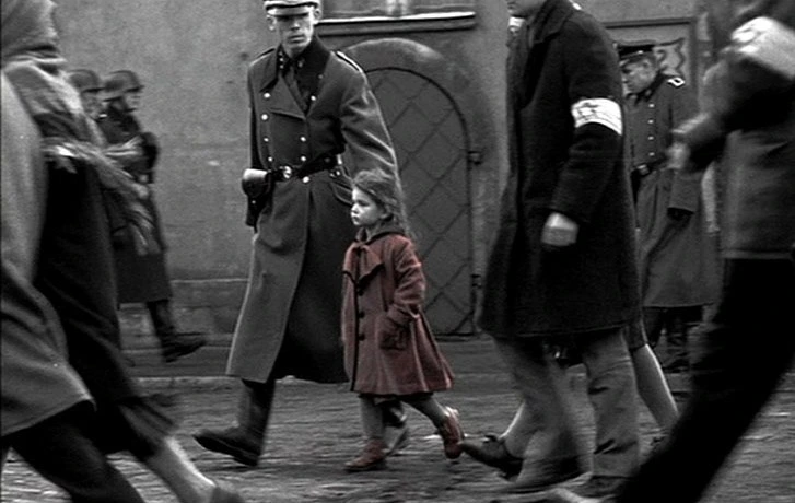 영화는 내내 흑백 화면을 보여주다 독일군 장교 괴트(랄프 파인즈)가 게토를 쑥대밭으로 만드는 유대인 학살 장면에서 처음으로 빨간 코트 입은 소녀를 등장시키는데 이는 오스카 쉰들러가 그동안 편의를 봐주던 인심 좋은 사장님에서 ‘쉰들러 리스트’를 만들어 유대인들을 구하는 의인으로 변화하는 결정적 계기가 된다. ‘쉰들러 리스트’는 쉰들러가 자신의 군수품 공장에서 일할 노동자가 필요하다는 핑계로 수용소에서 빼내 오기 위해 작성한 유대인 명단을 말하는데 그는 독일 장교들을 온갖 뇌물로 매수해 명단에 적힌 이들을 수용소에서 구해낸다. 그리고 그의 공장은 수개월 동안 실질적인 생산품을 만들지 못하고 버티다 종전을 맞이한다. 그리고 쉰들러는 유대인들을 빼돌리는 비용에 공장이 돌아가는 동안 유대인들을 먹여 살리는 비용까지 그가 벌어들인 재산을 대부분 잃는다. 쉰들러가 구해낸 유대인들은 종전 후 자유의 몸이 될 수 있었지만, 아이러니하게도 쉰들러는 나치 당원이었다는 이유로 전범자가 되어 도망자 신세가 된다.