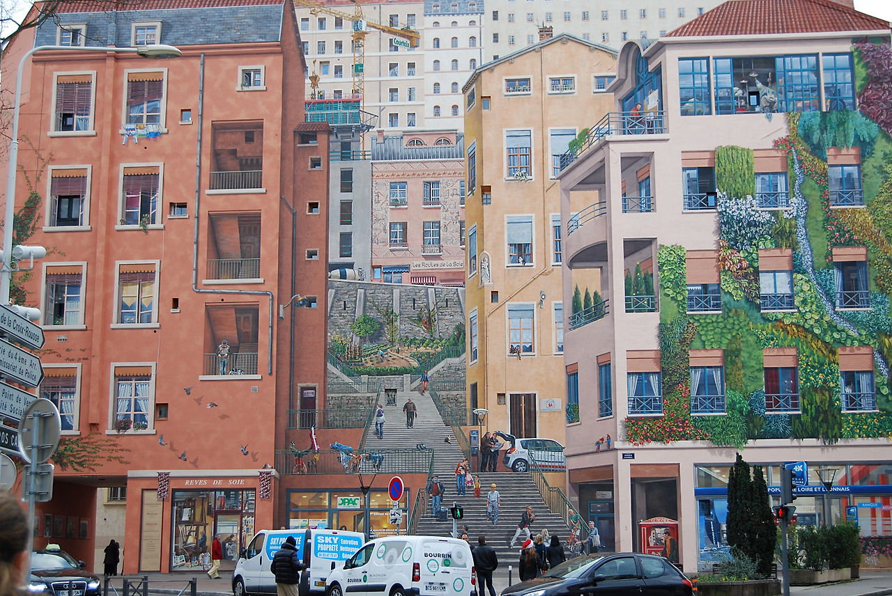 프레스킬 북쪽은 라 크루와 후스 지역으로 18~19 세기에 실크 제조 업체가 모여 있던 곳이자 리옹의 실크 산업을 대표하는 지역이기도 하다. 하지만 실크 산업만큼 유명한 것이 하나 더 있다. 바로 벽화. 우중충한 건물 외벽에 'Mur des Canuts'라는 벽화를 그려 생기를 불어넣으면서 해당 벽화와 함께 라 크루아 후스 지역도 유명해졌다. 놀라운 건 1997년 처음 벽화가 그려진 후로 매년 조금씩 그림이 업데이트된다는 것! 벽화 속 인물들이 세월에 따라 늙어가는 모습이 벽화 속에도 고스란히 담긴다. 프랑스는 문화적 가치를 지닌 곳으로 개발하고자 마음먹으면 지속해서 그 가치를 유지하기 위해 많은 노력을 쏟는다는 것을 느낄 수 있는 부분이다.