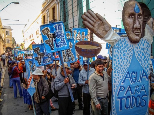 1998년, 경제 위기를 겪고 있던 볼리비아는 세계은행에 차관을 요청했습니다. 세계은행은 수도 민영화를 해야만 2500만 달러를 빌려줄 수 있다고 못 박았고, 결국 우고 반세르 대통령은 법을 개정해 가며 수도 민영화를 받아들였습니다. 미국의 백텔, 영국의 인터내셔널, 이탈리아의 에디슨 등 다국적 기업들은 상하수도 운영 독점권을 따냅니다. 기간은 무려 40년입니다.