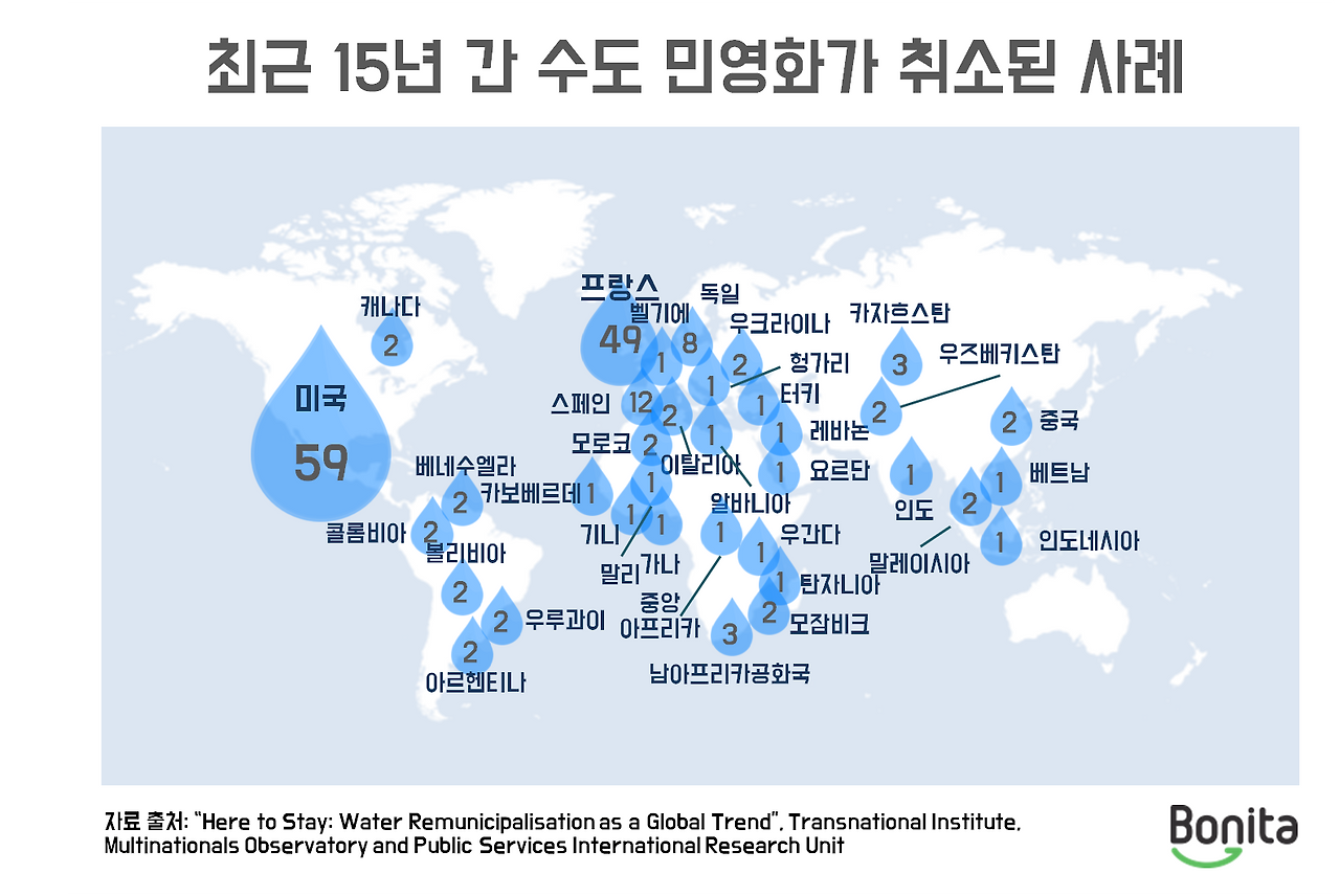 다국적 연구소를 비롯한 3개 기관에서 최근 발표한 보고서에 따르면, 지난 15년 간 35개 국가 180개 도시에서 민영화가 철회되거나, 다시 공영화로 바뀌었다고 밝히고 있습니다.