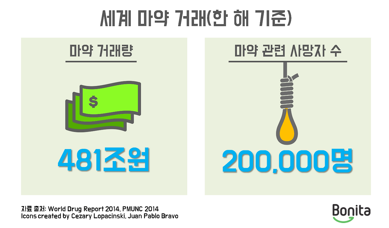 유엔에서 정한 기준으로 보면, 우리나라는 마약 생산이나 유통이 쉽지 않은 마약청정국에 속합니다. 마약청정국의 기준은 인구 10만 명당 마약 사범이 20명 미만인 경우로, 우리는 1만 2천 명 이상의 마약 사범이 적발 된다면 이 지위를 잃게 됩니다.