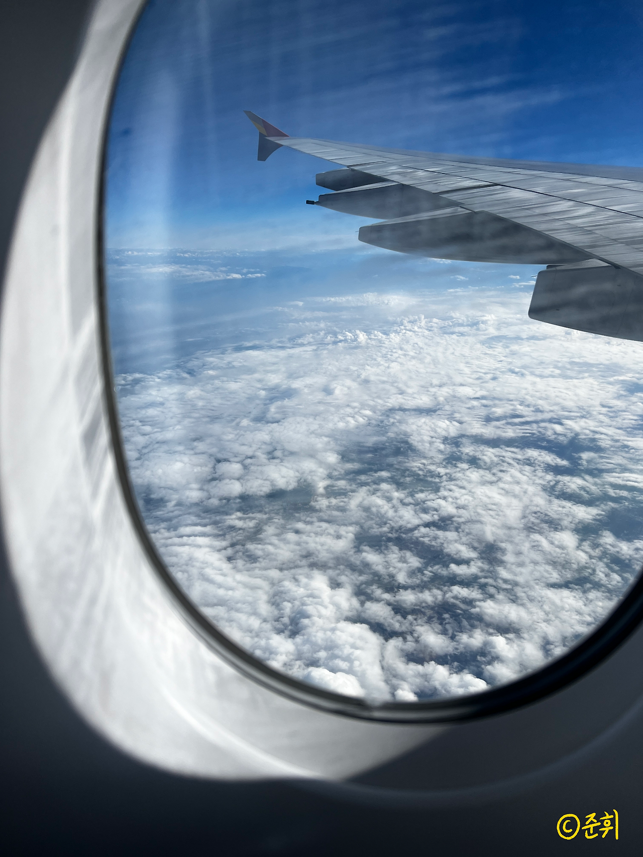 공항에서 아빠와 재환이, 승훈쌤이랑 마지막 만찬처럼 샌드위치를 먹었는데 목구멍에서 넘어가질 않는 것을억지로 삼켰다. 이내 작별의 시간이 다가오고 나는 출국 수속을 밟으러 떠났다. 그날따라 사람이 없어서 순식간에 들어갔다. 미련은 가지지 말란 듯이 말이다. 그렇지만 정작 비행기는 무슨 내 마음처럼 한 시간 사십여분을 질질 끌면서 뜨질 못하다 마침내 활주로에서 발을 뗐다. 처음엔 기분이 너무 이상했다. 잠도 오지 않고 이것저것 하려고 해도 손에 잡히질 않았다. 그러다 뽑아준 사진들이 갑자기 생각나서 그것들을 보는데 왈칵 눈물이 솟는 것이 아닌가. 한 삼십 분은 펑펑 운 것 같다. 군대에 가는 것도 아닌데 참 이상했다. 여하튼 그렇게 받아들이는 시간이 지나고 마음을 추스르며 남은 비행을 마쳤다.