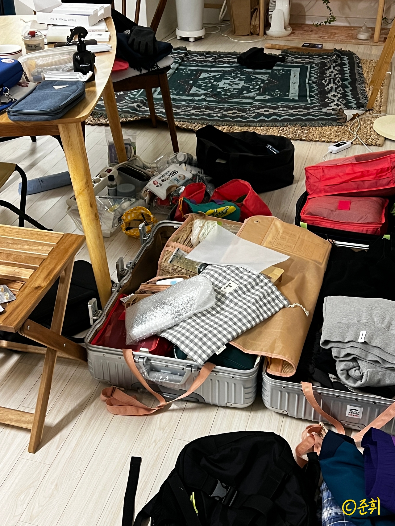 출발 한 달 전부터 정신이 하나도 없었는데 전날이라고 다를까. 도떼기시장이 따로 없이 다 벌려놓고 밤새 짐을 꾸렸다 풀었다 반복했다. 가져가고 싶은 것들은 거의 미련이었는지 결국 다 빼내고 나서야 중량을 맞출 수 있었다. 한 시간을 잘 수 있었는데 그 마저도 마음이 불안하여 제대로 못 잤다. 마무리로 난장판이 된 집을 수습하려는 시도로 분리수거를 좀 했다. 진짜 떠나는 게 맞는 건지... 이게 맞는 건지 수백 번은 생각하면서 캐리어를 만졌을 것이다. 어쨌든 야속하게 시간은 흘러 내 몸만 한 캐리어를 들고 눈길을 헤쳐 나아갔다.