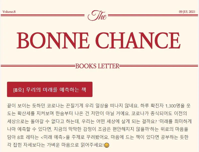 개인 1. 북큐레이션 뉴스레터, 본느샹스 레터