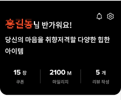 첫 만남, 고객이 가입 후 처음 만나는 페이지는 마이페이지다. 고객에게 좋은 인상을 주고 싶었고 이와 동시에 마이페이지에 들어오는 목적성은 잃고 싶지 않았다. 첫 진입 GNB 상단에는 고객이 궁금해하는 정보를 상단에 배치함으로써 굳이 찾아보지 않아도 한눈에 알 수 있는 플로우로 구성하였다. 알림과 설정을 상단에 둠으로써 마이페이지에 가장 많이 찾는 부분을 고객이 직관적으로 알게 함이 목적이었다.