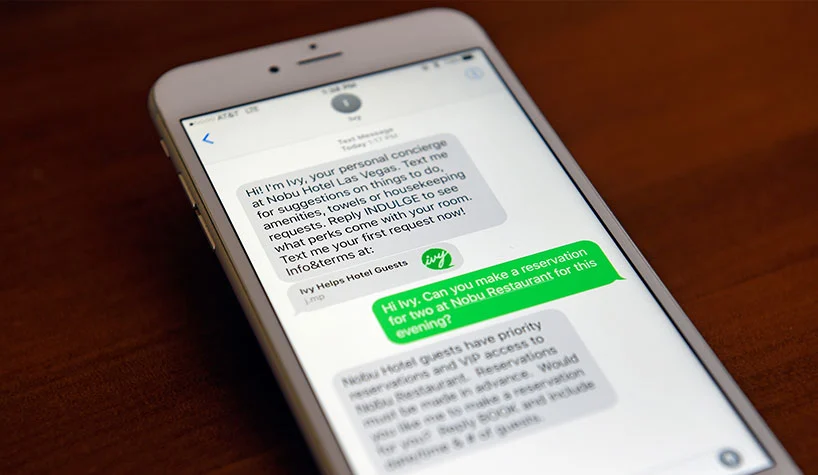 Cosmopolitan Las Vegas의 ‘Rose’: SMS 기반 AI 챗봇 ‘Rose’는 레스토랑 예약, 룸서비스, 티켓 추천 등을 수행한다.
