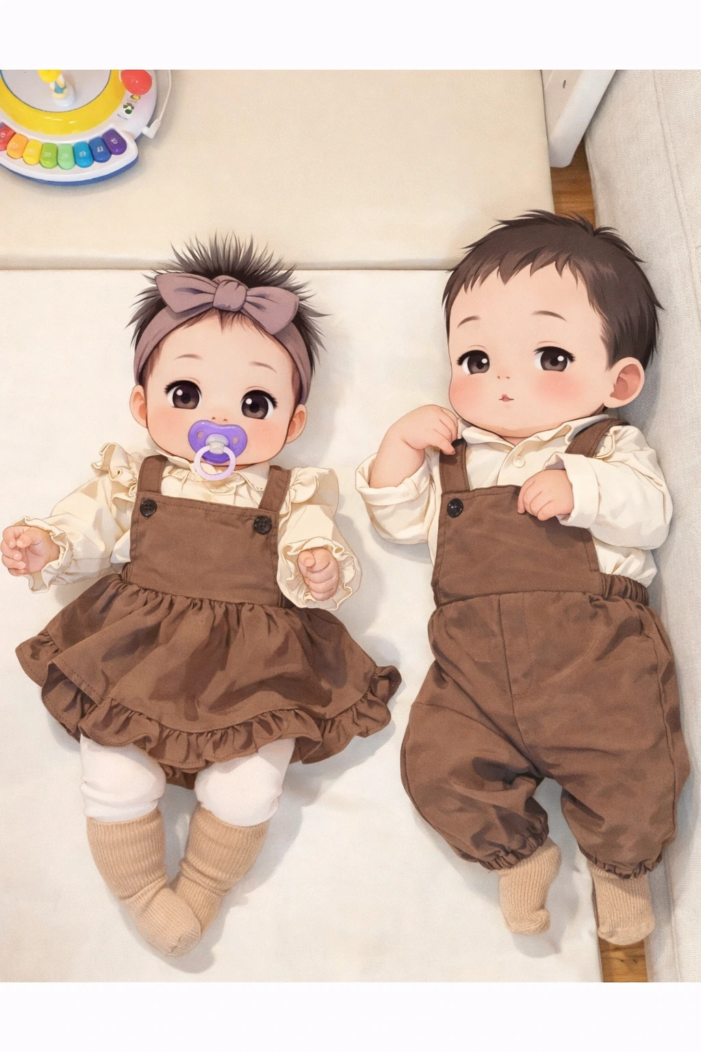 지금 배밀이를 하는 너희를 보며 곧 혼자 앉을 너희를 상상하고, “새 장난감으로 더 재밌게 놀 수 있겠지?” 하며 작은 기대들을 하나씩 쌓아가.