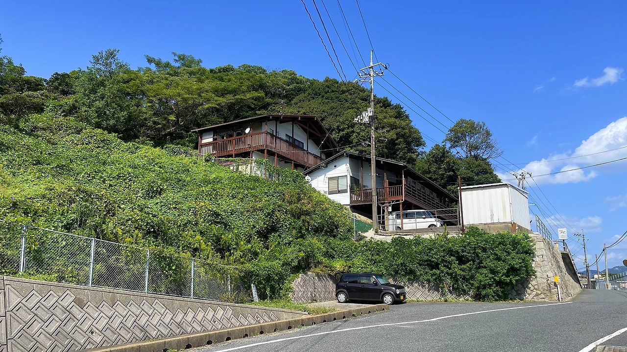드디어 발견된 외딴섬처럼 보이는 바다 위 카페. 'カフェテラス 汐望' 라는 카페이다.