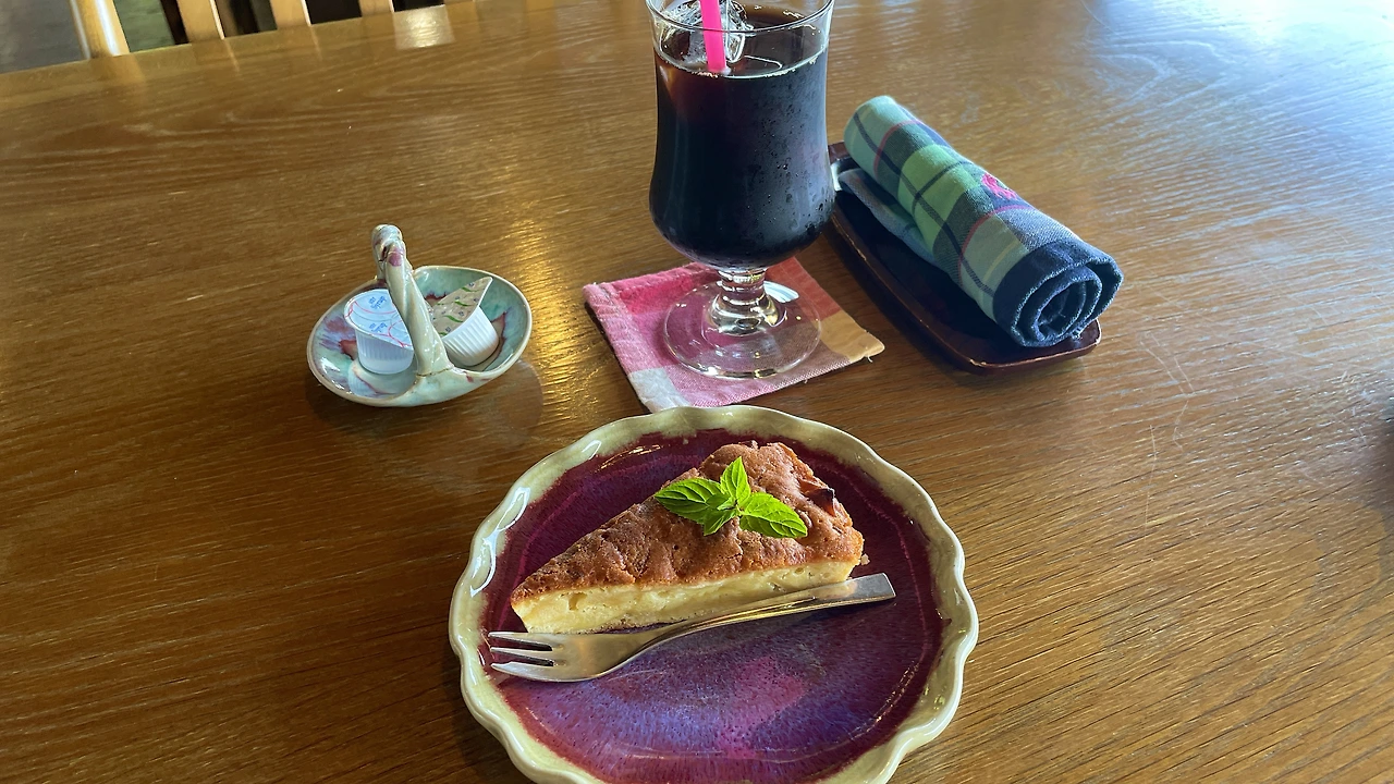 먼저 아이스커피를 시키고, 디저트로는 애플 케이크를 선택했다.