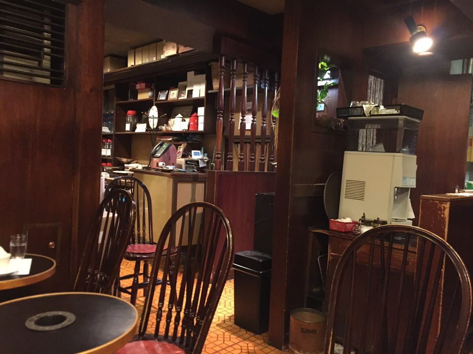 카페에 들어서니 이른 저녁임에도 불구하고 사람들이 꽤 많았다. 바에 앉아야 융드립 하는 모습도 보고 사진 찍기도 편할 텐데 바는 이미 만석이다. 다른 식당에서는 한 번도 앉지 못한 맞은편 2인석 원형 테이블로 안내받았다. 카페의 첫 느낌은 타임머신을 타고 다시 돌아간 기분이 들었다. 도쿄에서도 노른자 땅으로 이름 높은 긴자의 한 복판에 이런 카페가 아직도 있을 줄이야. 모두 오래된 것들 투성이다. 카운터에 놓인 전화기부터 때 묻은 내부 인테리어까지. 카페에는 젊은 남성 두 분과 중년의 여성 한 분이 일하고 있었다. 젊은 남성 한 명은 자리를 안내하고 카운터를 지키고 다른 남성 한 명과 중년 여성 한 분이 바에서 일하고 있었다.