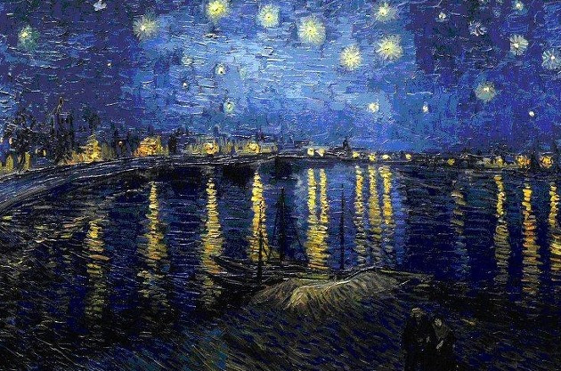 좋아하는 또 다른 그림은 '별이 빛나는 밤에'다. 별이 빛나는 항구 아래로 숨어 있는 한 쌍의 남녀 모습이 나를 사로잡았다. 내 멋대로 낭만적인 상상을 덧입혀 여기저기 프로필 사진으로도 많이 사용했고 한 때는 모작을 해보려고 노력도 했었다.