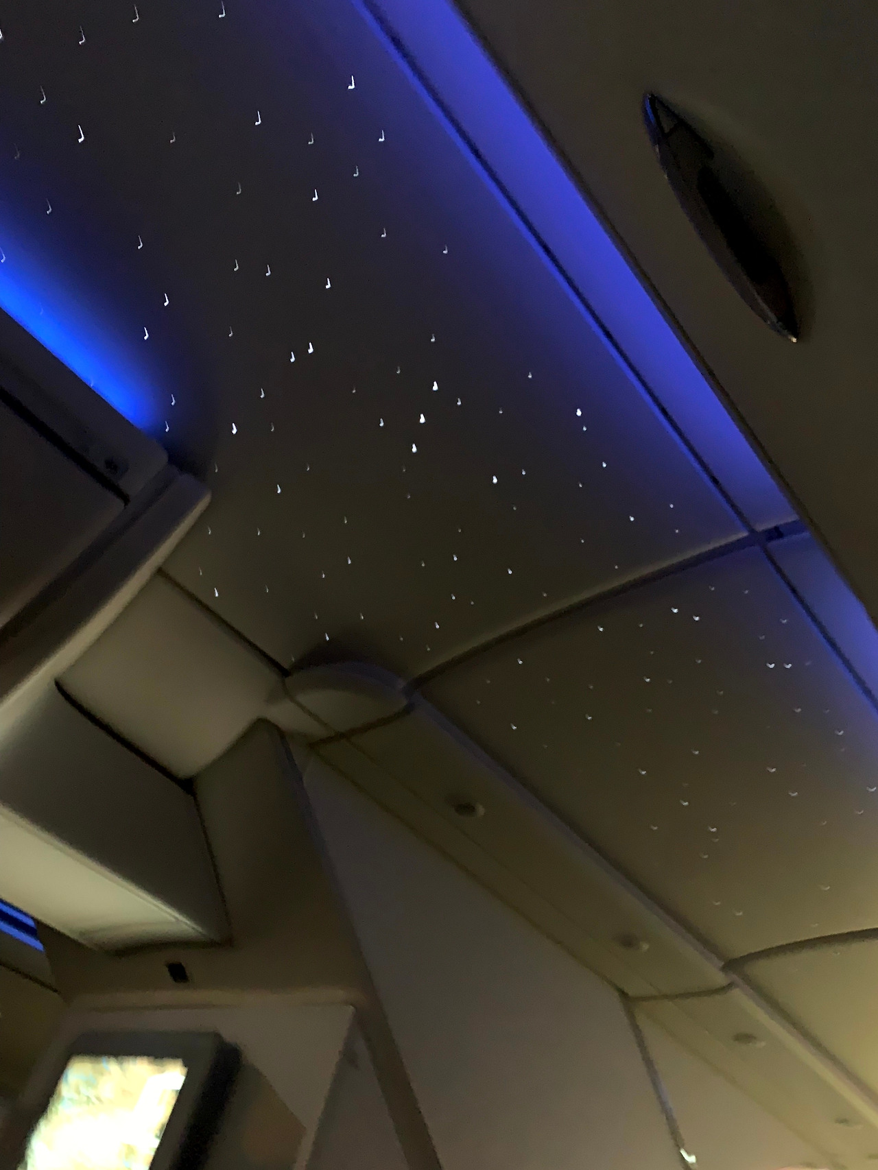 밤 비행기라 에어버스 천장엔 별이 가득하다. 이건 1층이든 2층이든 차별 없이 뿌려주는 거겠지. 2층엔 아예 은하수를 LED로 쏴주는 거 아니야? (꼬인 거 아니고 순수한 궁금함이다) 젊어서는 비행기 타면 잠도 잘 자고 화장실도 잘 안 가도 됐는데 나이가 들면 아무 데서나 잠도 잘 못 자고 화장실도 자주 가야 한다.