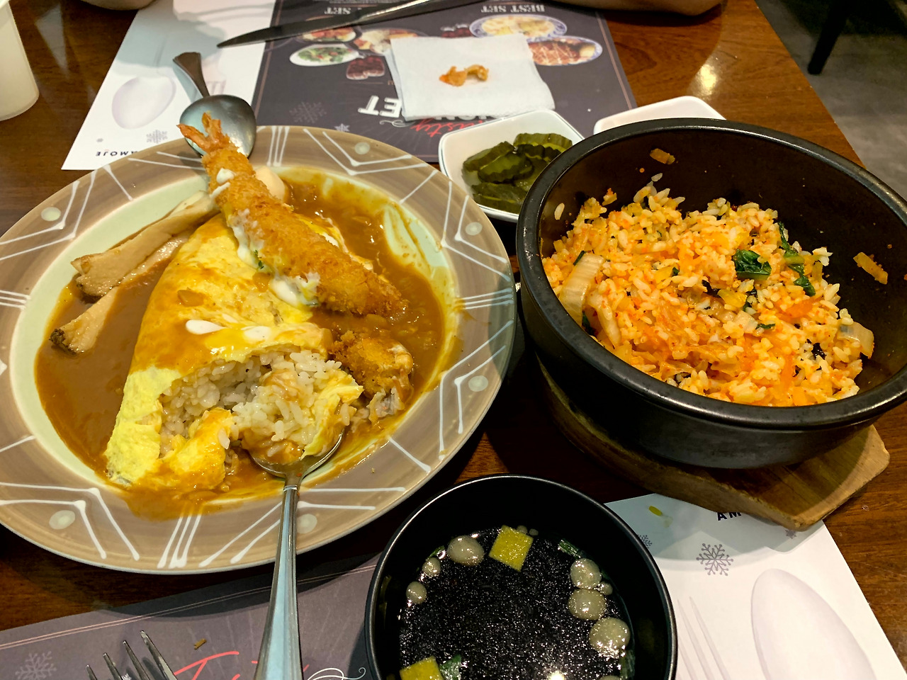 공항에 오면 늘 해물순두부를 먹었던 거 같은데 오늘은 새우튀김 오믈렛과 돌솥밥을 시켰다. 맛은 공항에서 먹는 맛(맛이 없지도 맛이 있지도 않은 그런 맛) 그 이상도 그 이하도 아니다. 그래도 남기지 않고 다 비웠다.