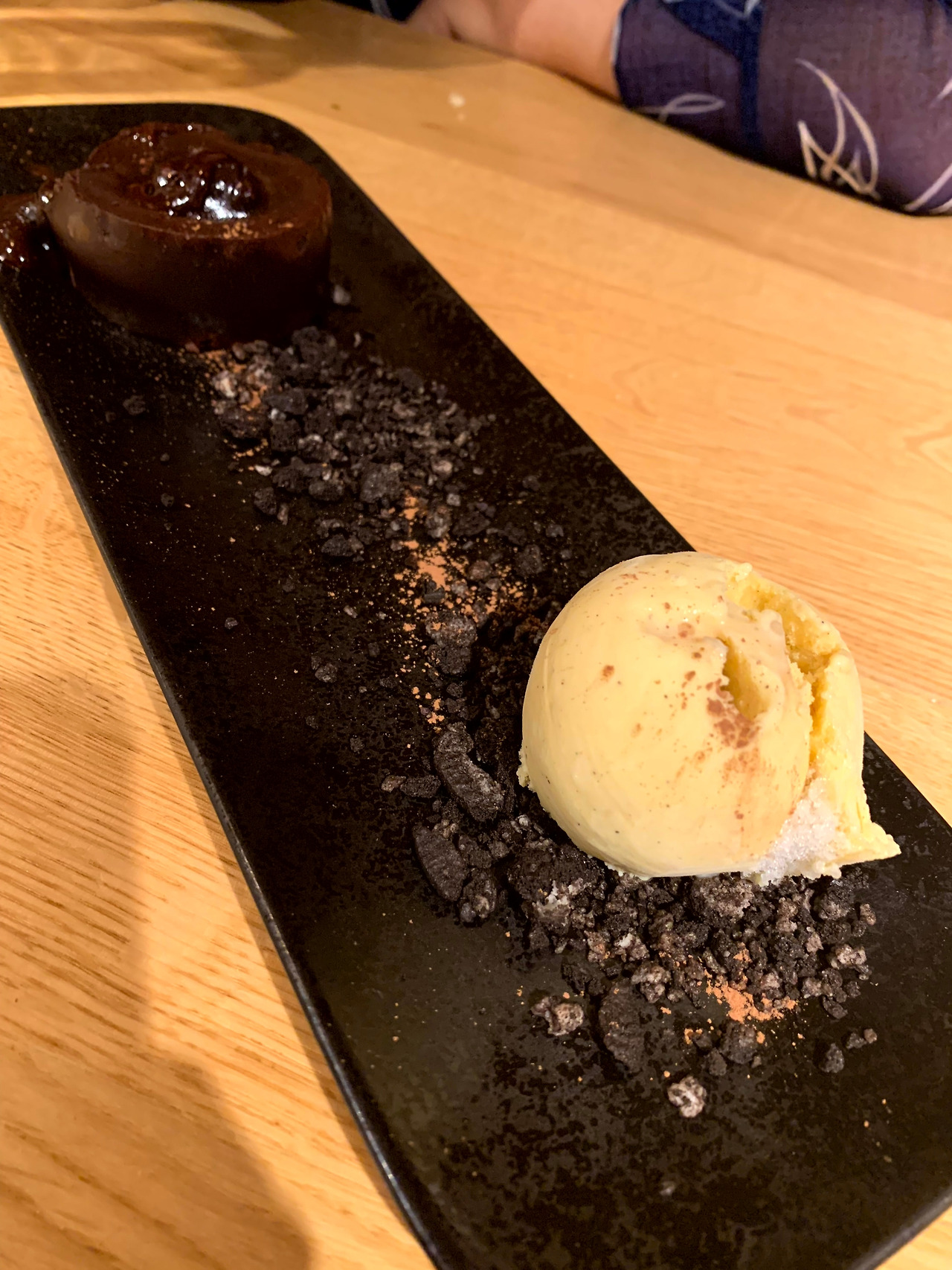 후식은 아이스크림과 무스 케이크 그리고 라떼 한잔을 시켰다. 접시 위에 무슨 숯을 깔고 놓은 줄 알았다. 이쯤 되니 배가 불러서 다 먹지 못하겠더라. 친절한 서버 분이 남기니 맛이 없냐고 묻길래 배가 불러 남겼다고 하니 환하게 웃어줬다. 나는 역시 친절한 사람한테 약하다.