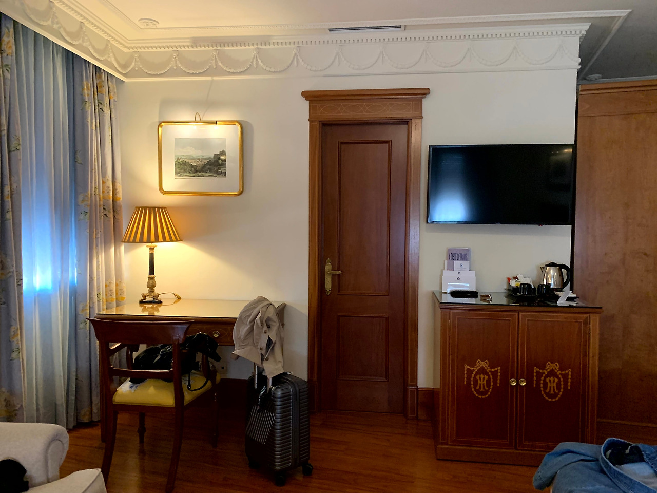 덕분에 예약한 룸보다 훨씬 넓고 좋은 곳으로 안내받아 기분이 한껏 들떴다. 호텔 잉글라테라는 오래된 유럽식 호텔이다. 전체적으로 옐로톤과 플라워 계열로 아늑하고 고전적인 분위기다. 나는 이런 오래된 느낌의 호텔을 좋아한다. 이번 여행에서 단연코 가장 좋았던 호텔이다. 강렬한 세비야의 태양을 막기 위해 창문마다 블라인드가 버튼으로 조작가능하게 되어 있다. 하지만 이 좋은 호텔에도 슬리퍼와 물은 없다. 대신 냉장고에는 물을 비롯한 다양한 미니바가 마련되어 있다. 어메니티는 호텔에 있을 딱 그 정도의 어메니티다.