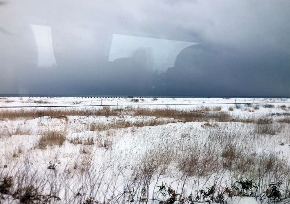 하늘은 낮고 어둡게 깔려있다. 좋은 날씨가 아니었다. 눈이 내린 벌판 끝에 새파란 바다가 놓여 있다. 어둡고 흐린 날 때문인지 바다와 하늘의 경계도 제대로 보이지 않는다. 기차는 바다와 맞닿아서 바로 옆을 달린다.