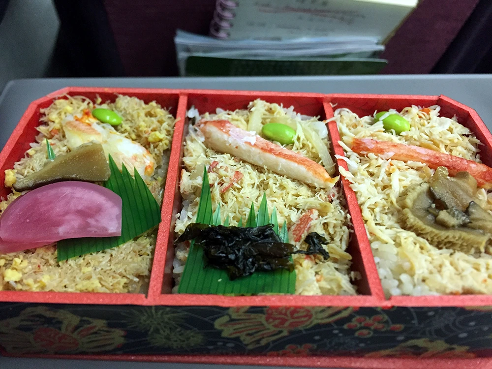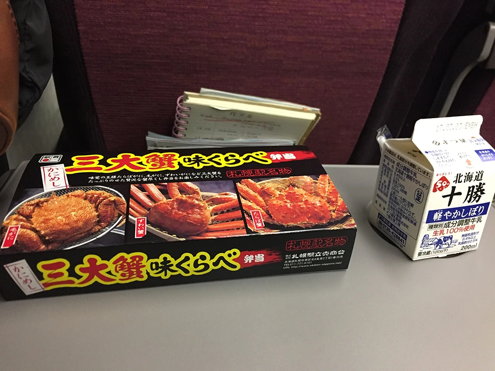 북해도 우유는 고소하고 담백하다. 생우유를 잘 안 마시는 나도 여행 내내 두어 번 사 마셨다. 첫 에키벤은 유명하다는 카니산슈아지쿠라베 벤또를 샀다. 만원이 훌쩍 넘지만 한 번쯤 사 먹어도 괜찮다. 세 가지 종류의 맛살을 음미해 보았지만 미각이 살아 있지 못한 지 그 맛이 확 다르게 느껴지지 않았다. 맛살이 약간씩 다르게 느껴질 뿐. 달고 짭쪼름하니 맛있게 먹었다. 역시 단짠은 진리다. 남기지 않으려고 최선을 다해 먹었지만 양이 꽤 많다.