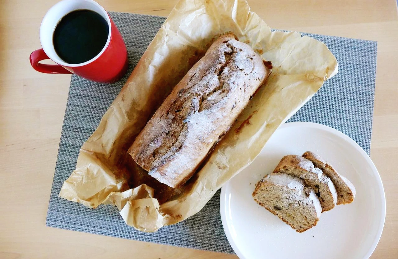 준비재료: 바나나 익은 것 중간 크기로 2-3개, 설탕 1/2컵 (170g), 코코넛 밀크 또는 두유 1/4컵 (60ml), 식용유 1/4컵 (60ml), 바닐라 엑스트랙 2 티스푼, 계핏가루 1 티스푼, 소금 1/2 티스푼, 베이킹파우더 2 티스푼, 밀가루 박력분 2컵 (250g).