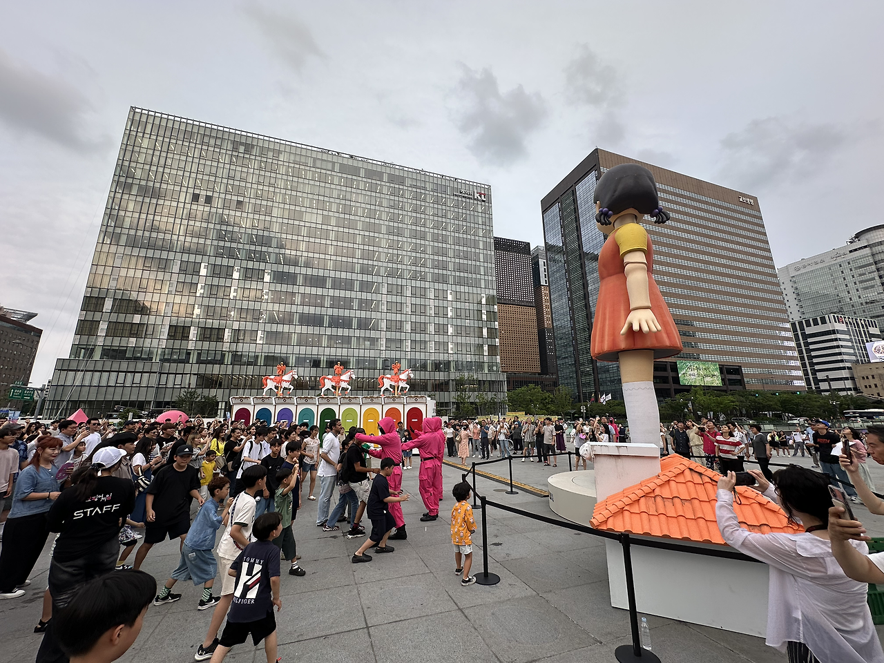어제까지 광화문 광장에는 오징어 게임 팝업 행사가 있었다. 수많은 관광객들과 외국인들로 인산인해였다. 아이들을 동반한 가족도 많았다. 해맑고 순순한 아이들이 과연 오징어 게임을 봤을까 싶다. 잔인한 자본주의의 민낯을 보여주는 19금 드라마는 최대한 천천히 봤으면 싶다. 세상의 어두운 부분보다는 밝고 따뜻한 부분을 봤으면 싶은 어른의 마음이다. 아무것도 모르는 순수한 마음으로 오징어 게임 행사에 참여하는 아이들 모습은 바라만 봐도 흐뭇하다. 광화문 광장은 원래 사람들로 가득했던 광장이었는데 본 팝업 행사로 더 많은 사람들이 있어서 복잡했고 때로는 진행요원 부족으로 행사가 다소 위험해 보이기도 했다. 35도를 넘어가는 이 무더위에 오징어 게임 병정 옷을 챙겨 입고 줄넘기 줄을 돌리거나 사진 촬영에 응해주는 등 행사 진행에 애쓰는 병정들을 보기에도 안쓰러웠다. 이것이 먹고살기 위한 어른들의 사정이다. 자본은 카카오 프렌즈 매장을 비롯 다양한 매장에 기다렸다는 듯이 오징어 게임 관련 상품을 출시했다. 넷플릭스 시청률은 아직 1위를 기록하고 있지만 해외에서도 이어지는 혹평에 아마도 그 자리를 오래 유지하기는 힘들어 보인다. 관련 주가도 급락 중이다. 이 소란도 지난 어떤 소란과 마찬가지로 시간이 지나면 잊힐 것이다. 다만 아쉬움으로 기억할 것이다.