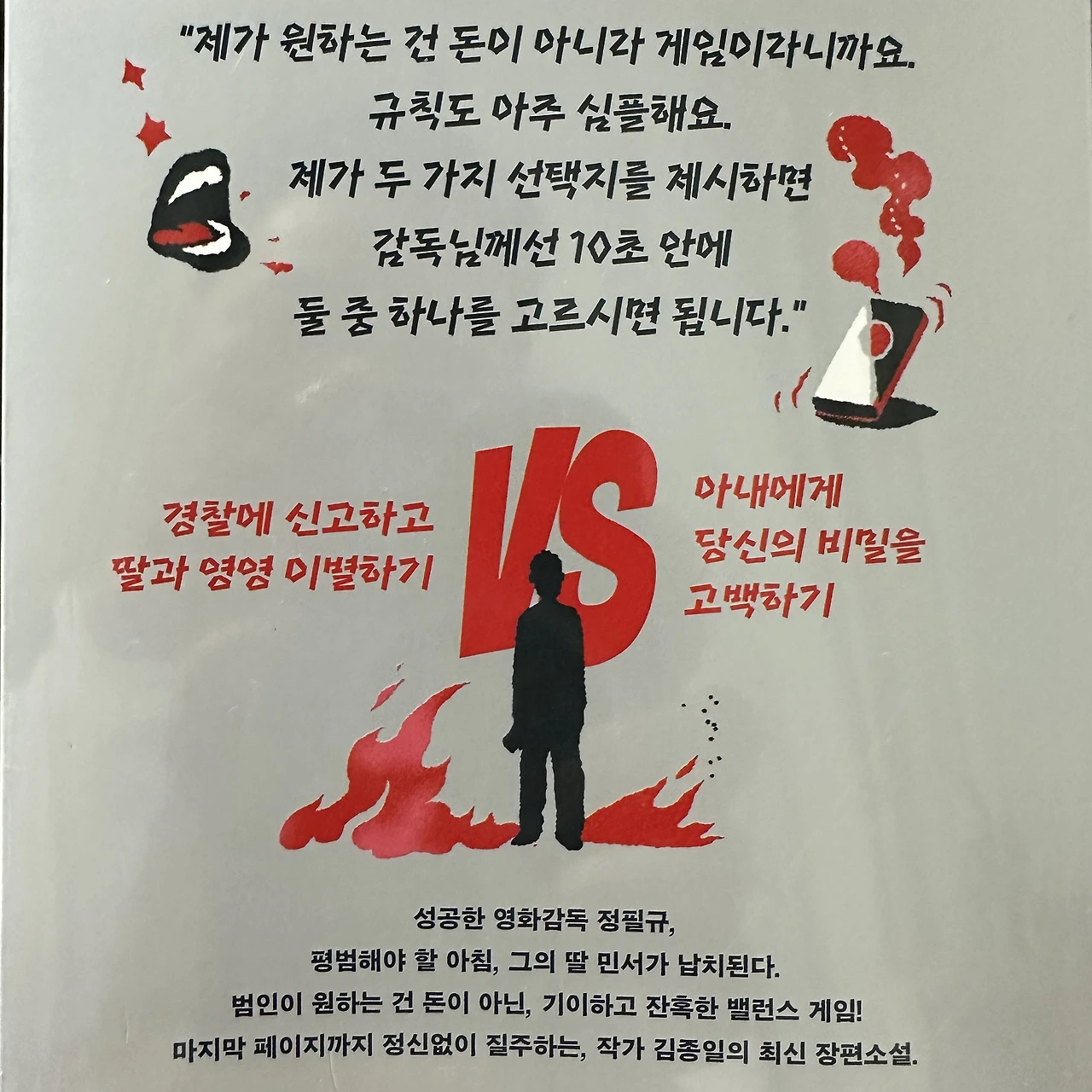 이 소설의 에필로그까지 읽어보며 느낀 바, 이 장편소설은 영화 [더 테러 라이브], 드라마 [오징어 게임]의 어떤 장면 장면들이 떠오를 정도로 영상화에 최적화된 소설이다. 어쩌면 작가는 처음부터 영상화를 노리고 이 장편소설을 써 내려갔을 지도 모른다. 이미 작가의 여러 작품이 영상화로 검토되거나 진행되고 있기 때문에 당연한 것인지도 모르겠다. 나 또한 이 작품의 영상화를 상상하며 읽고 있었다. K 콘텐츠가 각광을 받는 이 시대에 순문학을 넘어서 이런 다양한 장르의 소설이 힘을 받아서 세상의 주목을 받았으면 하는 바람이다.
