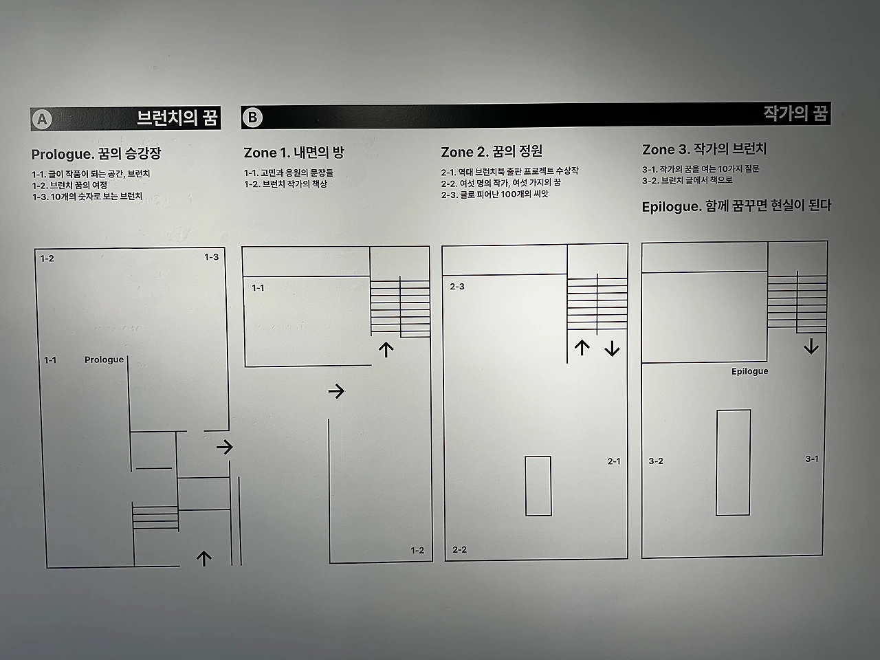 전시 공간은 생각보다 넓지 않았다. B동 기준으로 3층 구조였지만 1층으로 넓게 있었던 작년 브런치 팝업 전시에 비해서 어딘가 조금 답답하다는 느낌이 들었다. 사람이 조금 몰리면 제대로 구경하기 힘들겠다는 생각이 들어서 평일에 오기를 잘한 것 같다. 그래도 예약제로 입장 관리를 하고 있어서 불편한 상황은 생기지 않을 것 같긴 하다.
