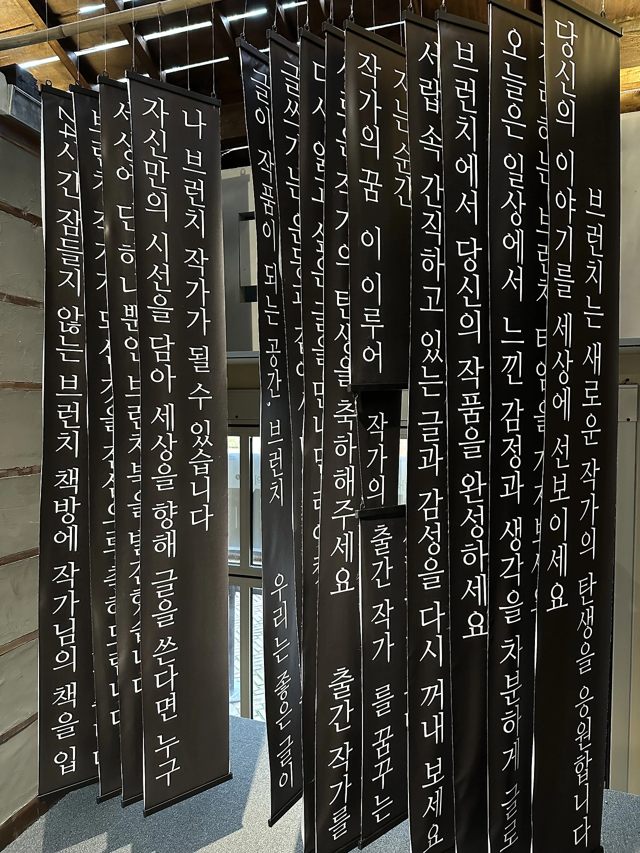 첫날이고 평일 낮이라 그런지 한산했다. 안내해주시는 브런치 직원들도 친절했다. 입장하자마자 작가들을 응원하고 격려해 주는 문장들이 화려하게 설치되어 있었다.