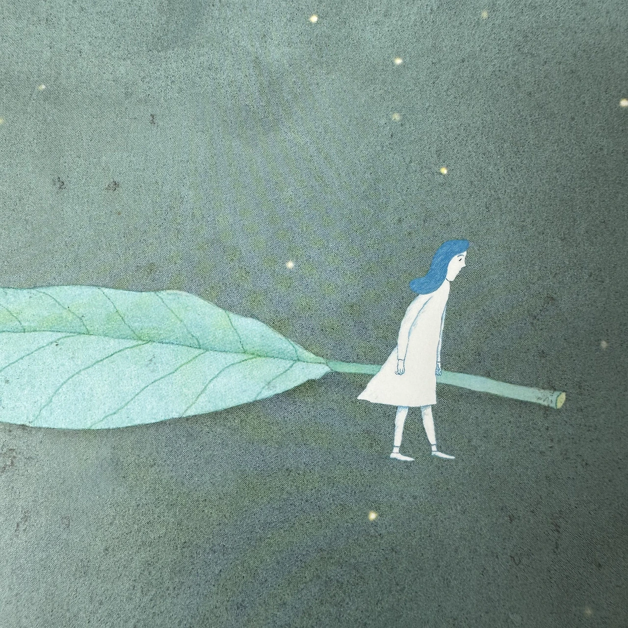 톤이 내려간 초록빛의 표지와 시집을 읽으며 음미하는 듯한 사람이 눈을 감고 책을 들고 있다. 수직으로 휘날리는 초록빛 머리카락과 고개 숙인 모습이 대조적이다. 뒷 표지는 거대한 낙엽을 뒤로하고 유유히 걷는 작은 여성의 모습이 보인다. 앞 뒤 배경으로는 눈송이가 조금 휘날린다. 면지에는 은은한 톤의 무늬 혹은 패턴이 여백을 채우고 있다. 하지만 남은 여백에서 어딘가 허전함이 느껴진다.