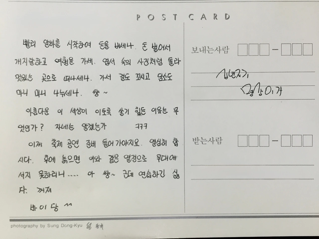 미선은 이제 김명상을 ‘명상아’ 라고 부르는 것이 자연스러워졌다. 같은 학년이니까 당연했다. 하지만 그 이름을 부를 때마다 특별한 감정이 묻어났다. 김명상이 노래를 부를 때면 베이스 연주를 멈추고 바라보곤 했다. 그 눈빛에는 감탄과 애정이 섞여 있었다.