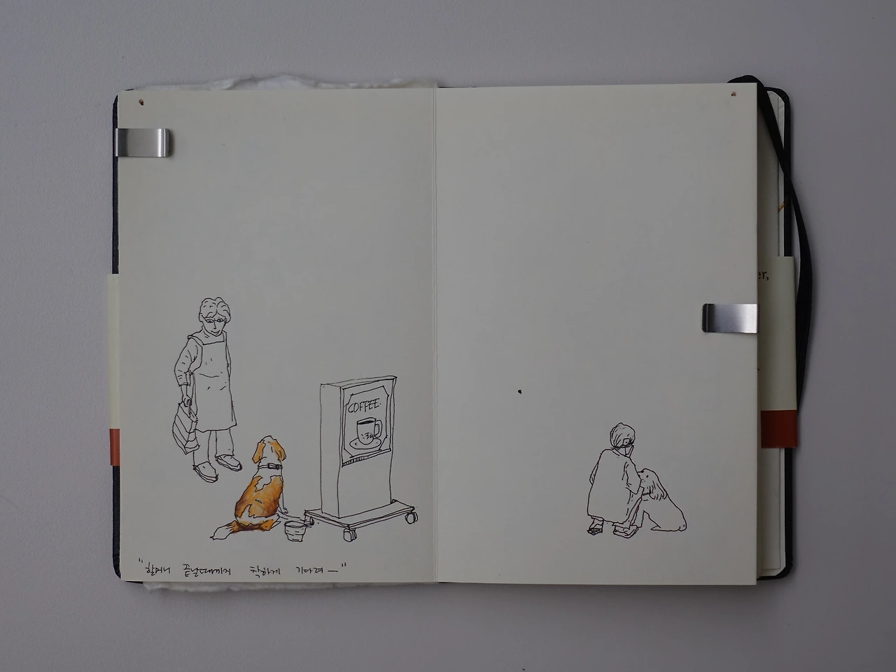 게다가 아내에겐 놀라운 능력이 있었습니다. 여행 중에 그녀는 아코디언처럼 펼쳐지는 작은 몰스킨 노트에 그림을 그리곤 했는데, 얼핏 봐도 예사 실력이 아니었습니다. 한 번은 아내가 맛있게 먹은 레스토랑의 코스 요리를 즉석에서 그려 선물한 적이 있습니다. 울듯이 감동한 셰프의 표정이 아직도 잊히지 않습니다. 평생 혼자만 행복한 여행을 해온 제게, 아내는 모두가 행복해지는 여행을 가르쳐 줬습니다.