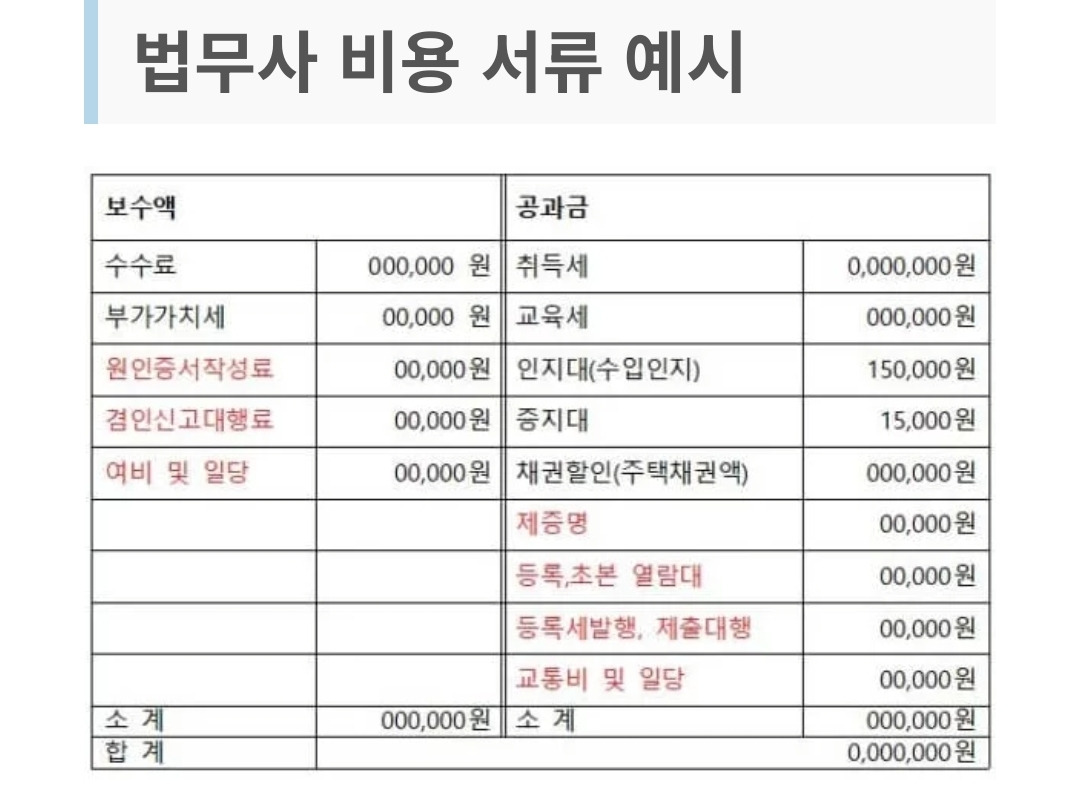 법무사 보수 : 상한 요율 내 협의 등기비용 : 인지세, 증지대, 국민주택채권, 제증명비, 그 외 기타 제반 비용