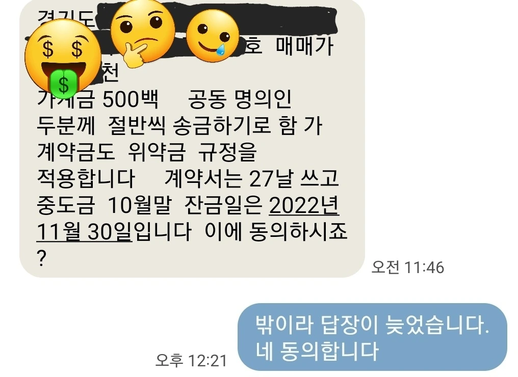 "법무사는 어떻게 하시겠어요? 따로 구하셔도 되고 저희 법무사 써도 되니까 잔금일 전에 연락 주세요."