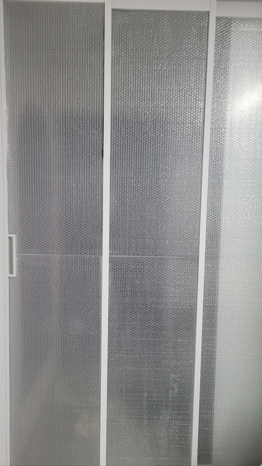 안방 창문과 현관 중문, 그리고 거실 쪽 폴딩도어까지 뽁뽁이로 도배했다. 분무기로 물을 뿌리고 창 크기에 맞게 자른 뽁뽁이를 붙이기만 하면 끝이라 만삭의 몸으로도 별 힘이 들지 않았다.