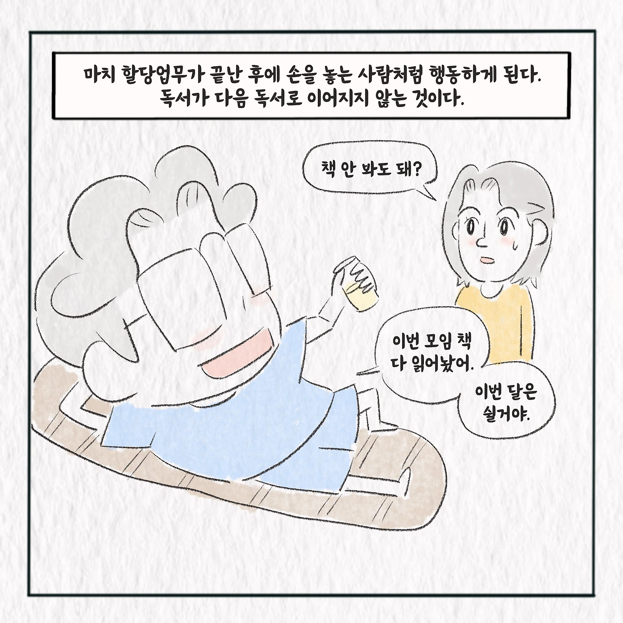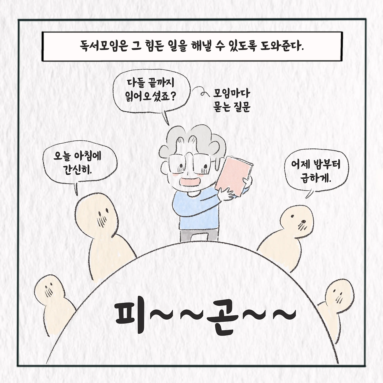 '책에 관한 만화'를 연재하고 있습니다. 책 읽기보다는 책 사는 걸 좋아합니다. 2015년부터 한 독서모임의 모임장으로 지내고 있습니다. 책에 대한 이야기를 꾸준히 그리겠습니다.