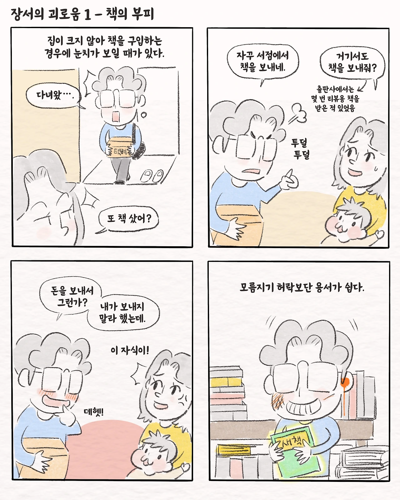 '책에 관한 만화'를 연재하고 있습니다. 책 읽기보다는 책 사는 걸 좋아합니다. 2015년부터 한 독서모임의 모임장으로 지내고 있습니다. 책에 대한 이야기를 꾸준히 그리겠습니다.