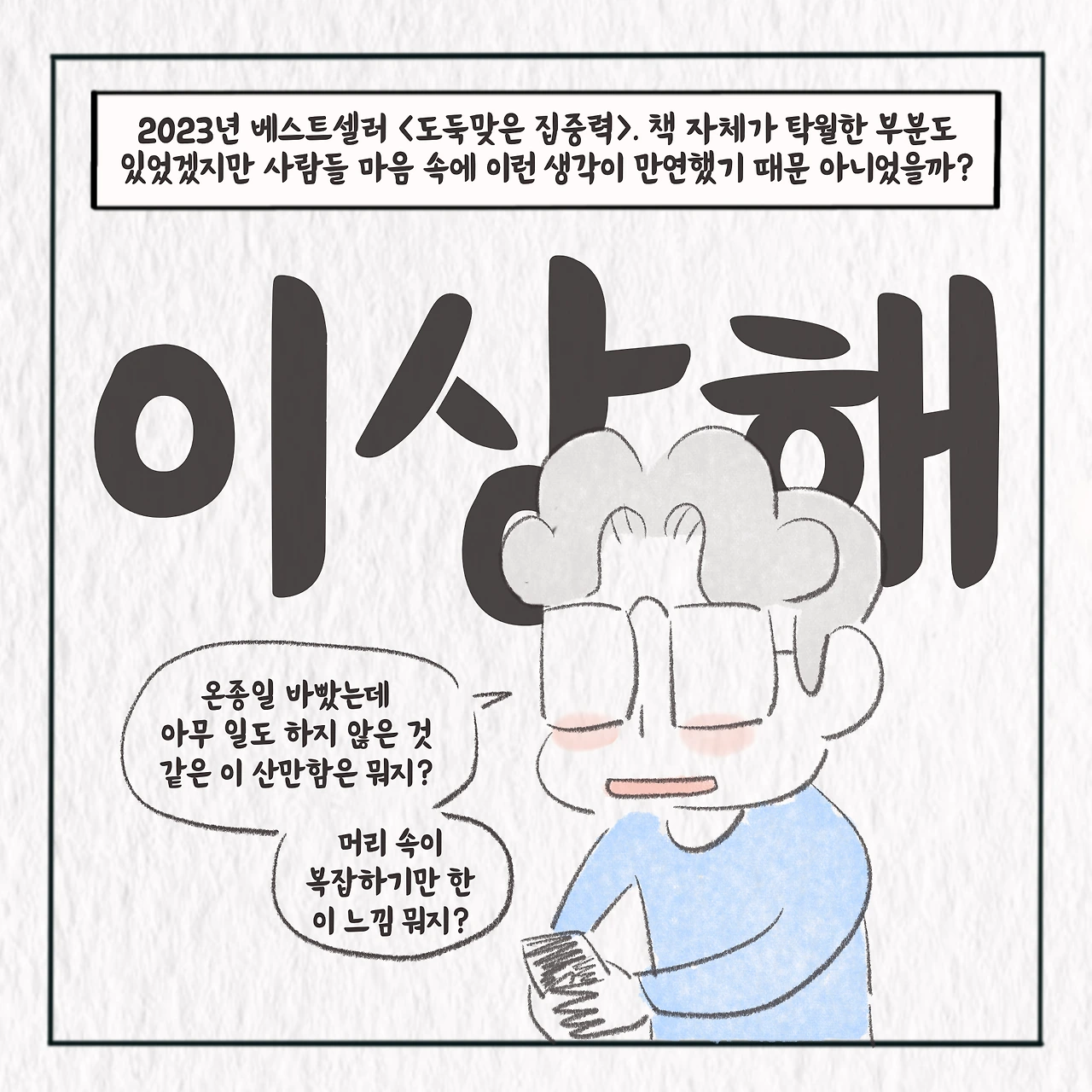 '책에 관한 만화'를 연재하고 있습니다. 책 읽기보다는 책 사는 걸 좋아합니다. 2015년부터 한 독서모임의 모임장으로 지내고 있습니다. 책에 대한 이야기를 꾸준히 그리겠습니다.