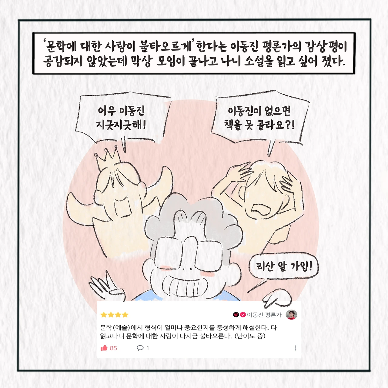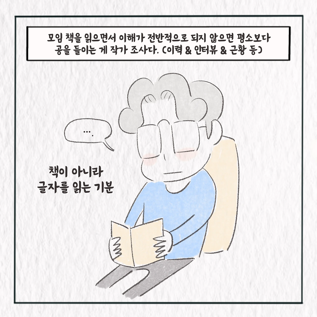 '책에 관한 만화'를 연재하고 있습니다. 책 읽기보다는 책 사는 걸 좋아합니다. 2015년부터 한 독서모임의 모임장으로 지내고 있습니다. 책에 대한 이야기를 꾸준히 그리겠습니다.