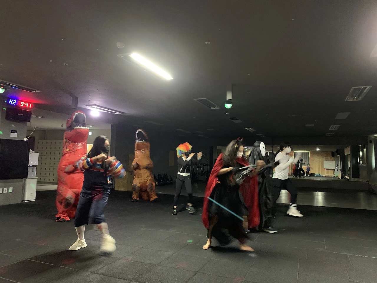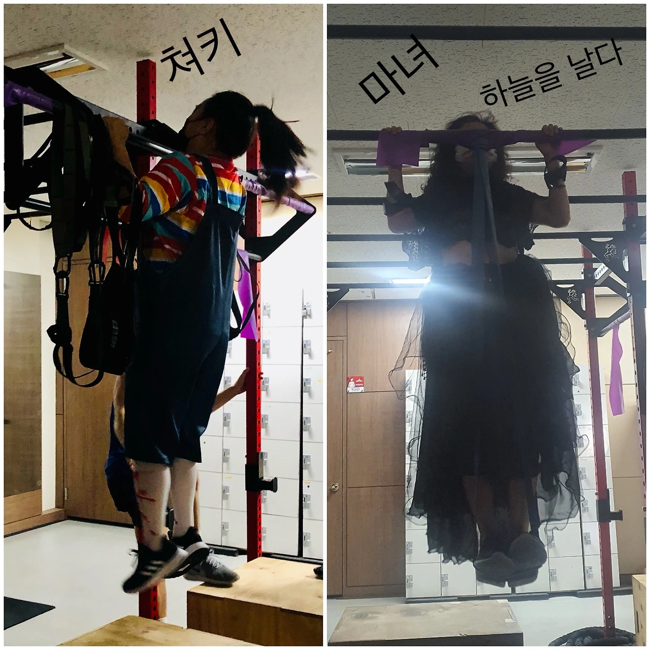할로윈 이벤트로 스승님 몰래 분장을 하고 갔습니다. 이렇게 가면 운동을 좀 덜 할 줄 알았는데…