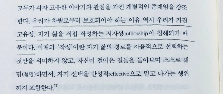 “고용이나 교육의 영역이 아닌 사랑과 우정 같은 사적인 애정의 영역이라면?”(p.253)
