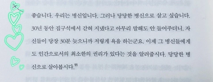 장애인들은 강렬한 투쟁 끝에 법률이 명시한 자신들의 자유권을 배려가 아닌 사회적 책무로 바꾸었다.