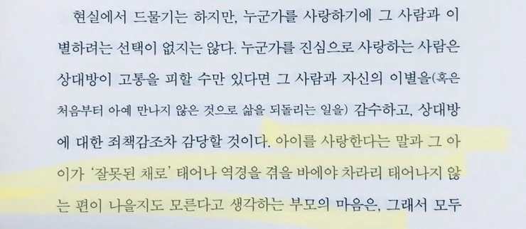하지만 어느 대답이건 아이를 사랑하는 부모의 마음을 같은 것이라고 작가님은 얘기하고 있다.