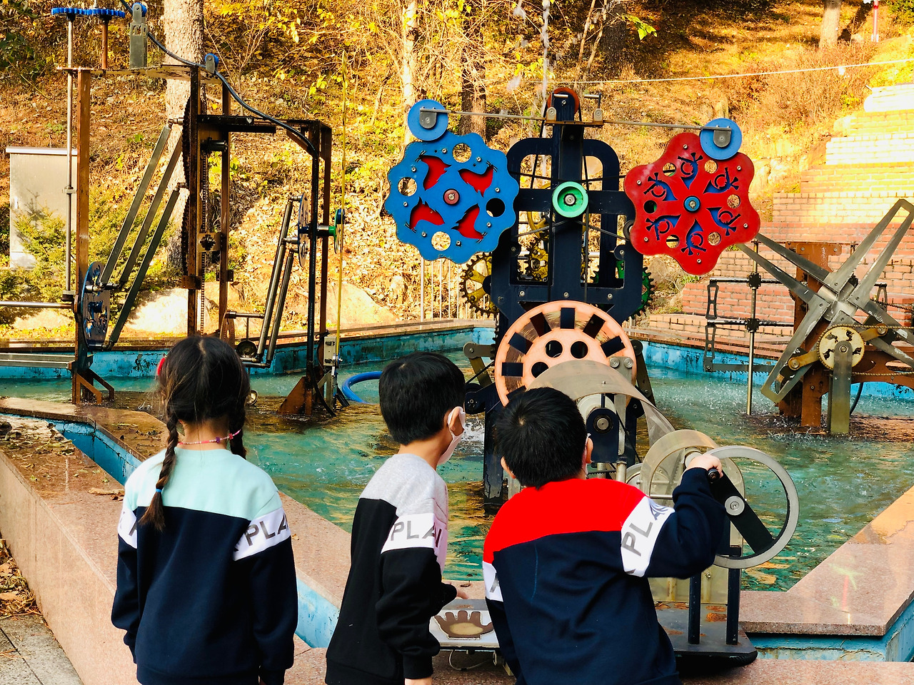 녀석들은 어메이징 파크 통틀어 이걸 젤 좋아했다. 그네 앞뒤로 물줄기가 쫙쫙 쏟아지는데, 그네가 숑숑 피해서 딱히 젖지는 않는다. 저것도 공학적 원리로 움직이는 거라지만, 그 원리를 미리 알려주면 생각 고착화가 어쩌고 저쩌고… 그래서 우리더러 그 원리를 상상하랜다. 하… 그게 가능하면… 물론 녀석들도 원리고 나발이고 그저 그네가 물줄기를 피할 때마다 까르르 까르르 웃는다. 그래, 니들이 행복하면 그만이지.