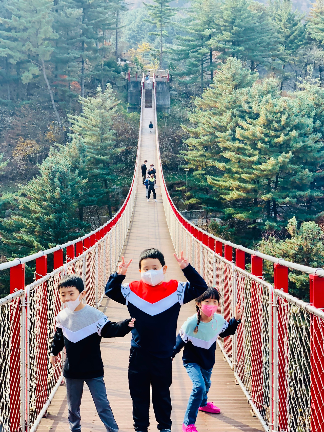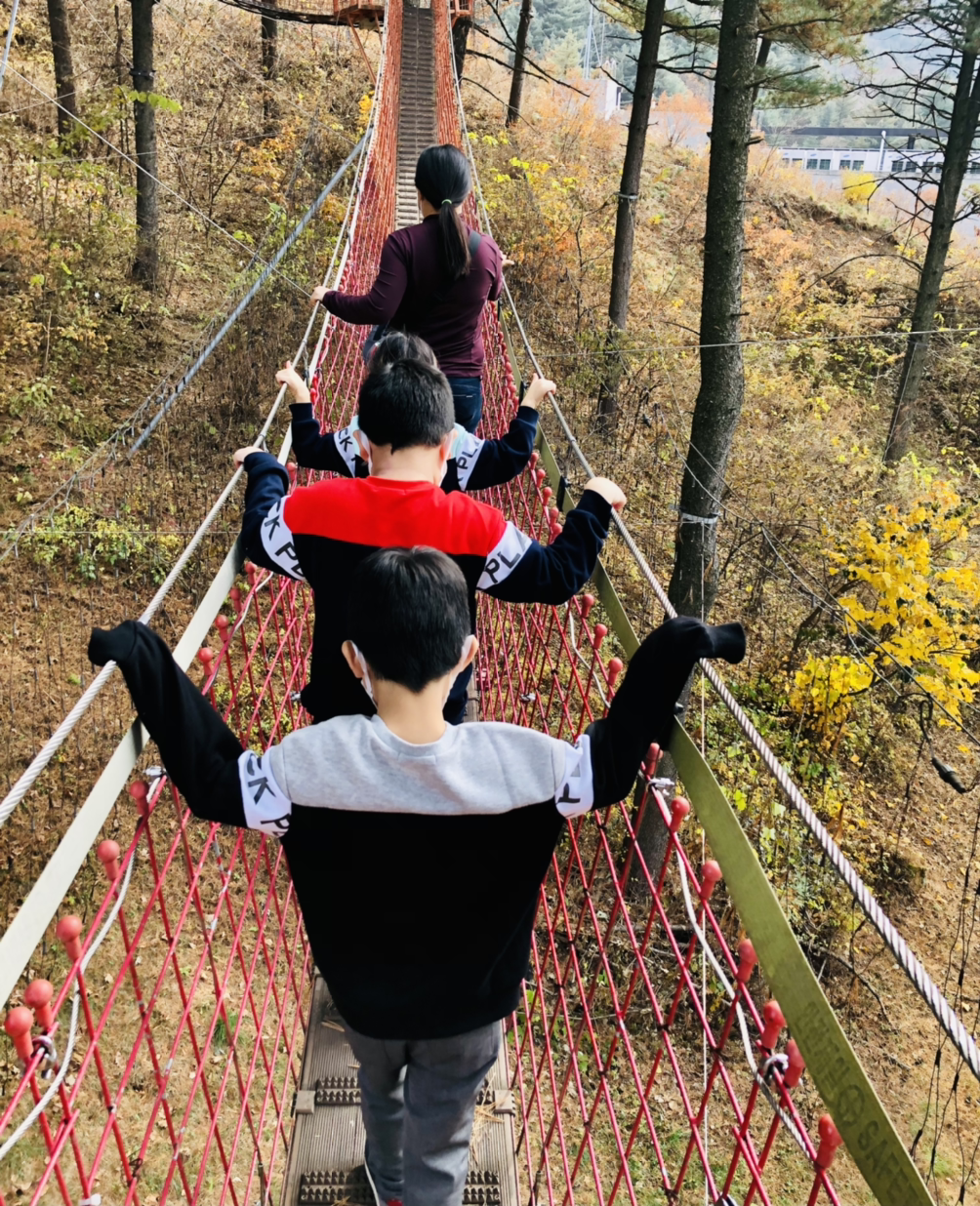 입장료를 끊고 요 다리를 건너갔다 도로 돌아오면 된다. 정말 저 끝까지 갔다가 다시 돌아오는 코스다. 굳이 왜… 라는 의문이 들 수 있겠지만 흔들거리는 다리가 높고 위태로워 보여서 그 행위만으로도 녀석들은 좋아한다. 서스펜스… 네이밍 센스 굿.