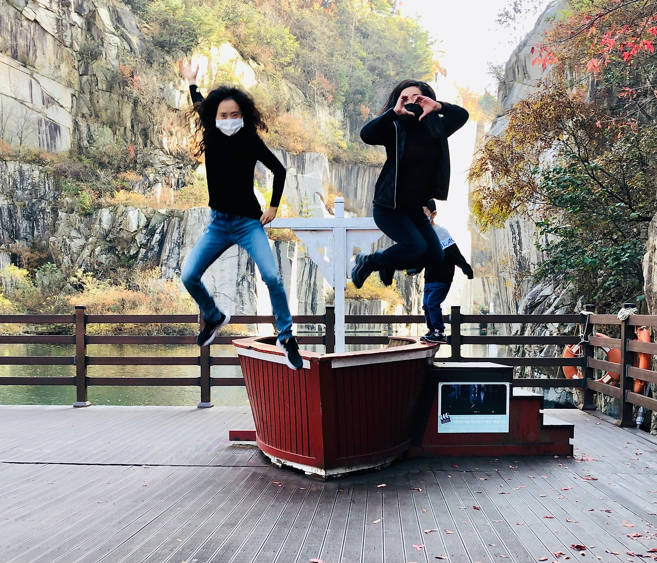 안 찍긴… 찍어야지. 폭포가 장엄하지 않으면 우리가 직접 장엄해지면 된다. 고공점프를 하여 장엄한 폭포를 몸소 표현했다. 그러는 우리는 40대다.